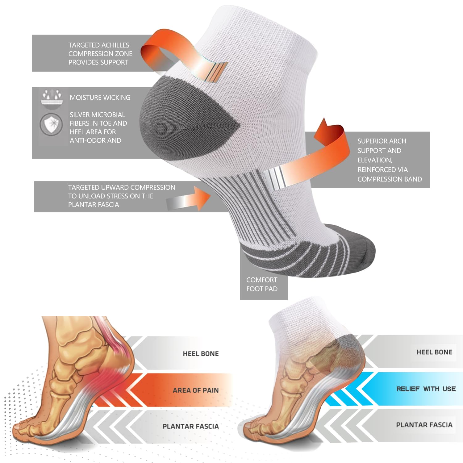 PAIN RELIEF & CIRCULATION BOOST – Our ankle compression socks help reduce swelling, ease pain from Plantar Fasciitis and varicose veins. Perfect for workers on their feet, athletes in training, or anyone needing better circulation during daily activities
