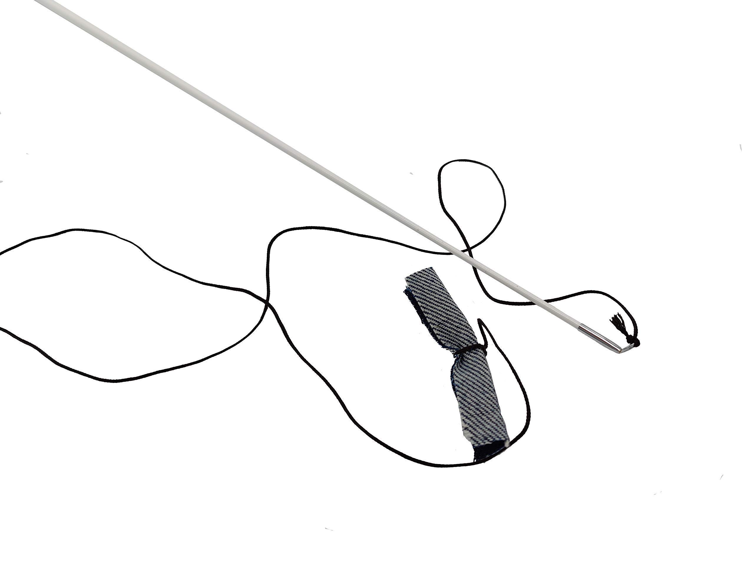 39 inch hand assembled cat toy pole made with quality materials such as Fiberglass rod, Wood handle and metal tip.