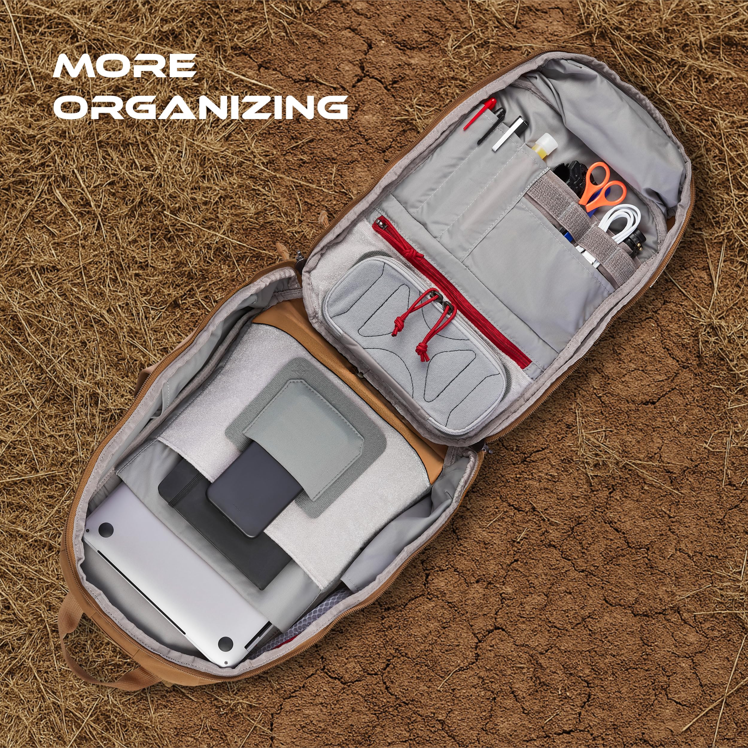 EXPANDABLE FRONT POCKET - Cinch down for streamlined daily use or expand to store jackets, shoes, or tactical gear without sagging, reinforced for durability.