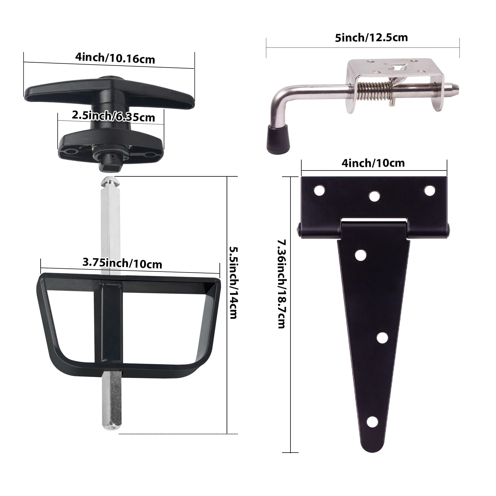 1.Complete Shed Door Hardware Kit: Heavy-Duty Security Essentials Included Upgrade your shed, playhouse, or outdoor structure with our all-in-one Shed Door Hardware Kit—designed to deliver robust protection. This essential set includes 6" Shed Hinges, Adjustable Barrel Bolts, and a Secure T-Handle Lock, along with other key Shed Accessories like a durable Shed Handle. Crafted for heavy-duty use, every component works together to fortify your shed door, ensuring it stays securely fastened against tampering or forced entry.