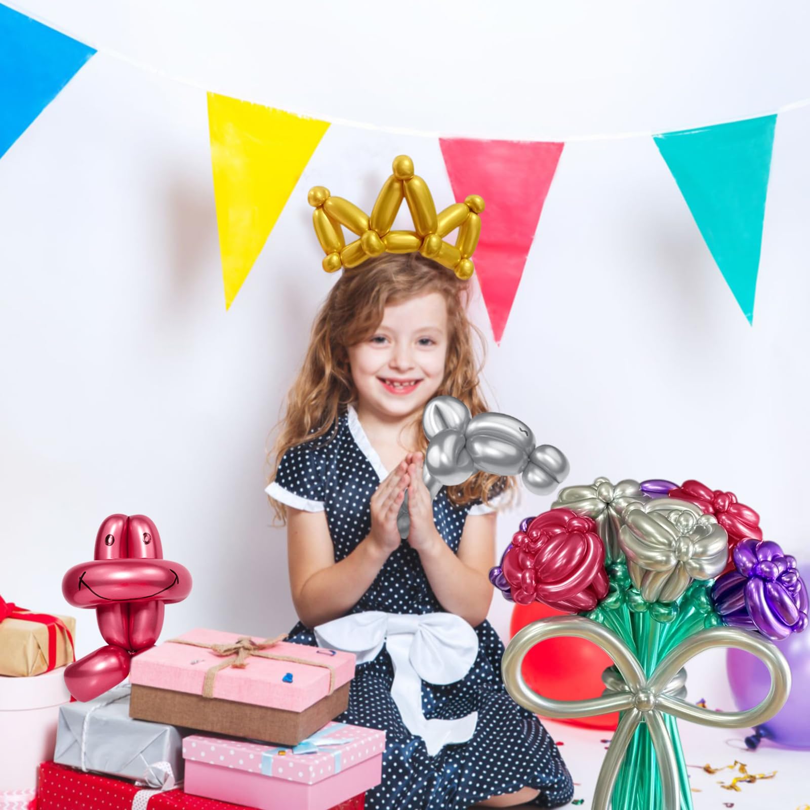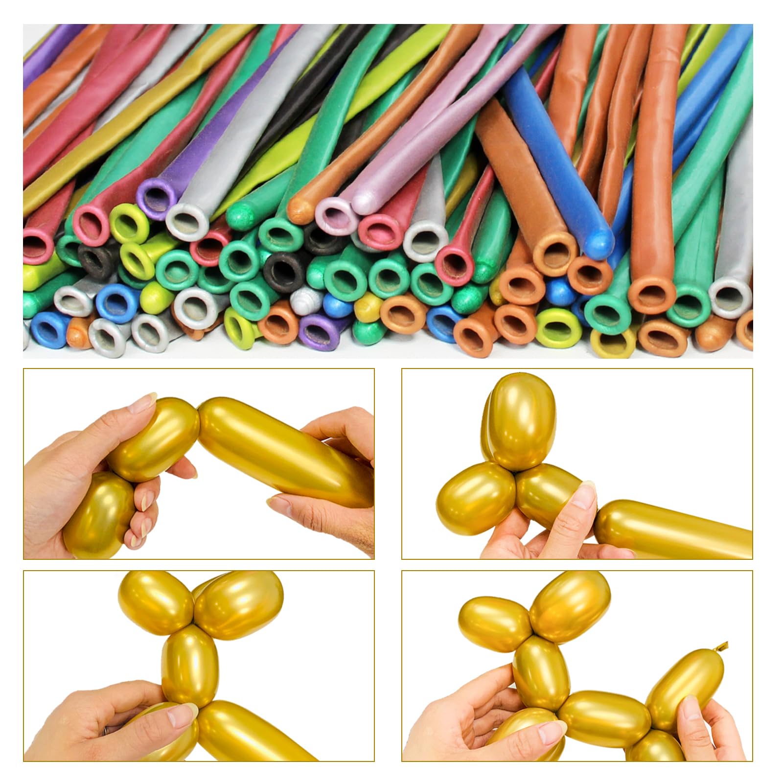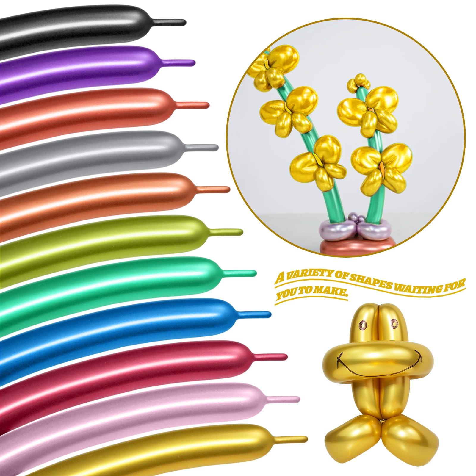 Plenty of high-quality materials, safe and non-toxic: The super elastic mixed color long balloons metallic is 20% thicker than the ordinary long balloon. Strong and hard to break, bright and opaque. These chrome metallic balloons decorations are made of eco friendly natural latex, which is very safe, Suitable for children to play!