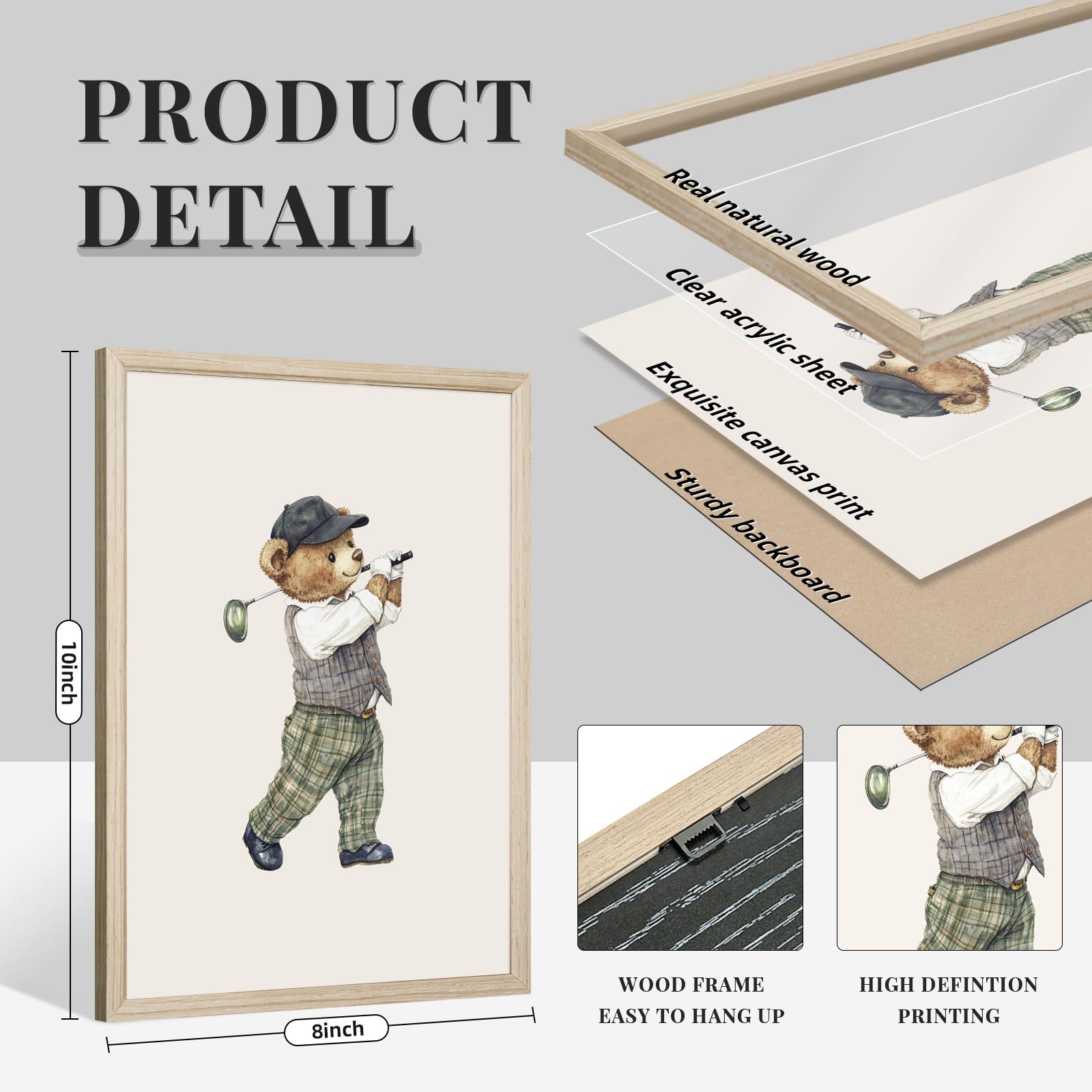 Product Details: Size:8x10 Inch set of 9 Material:300g thick natural cotton canvas Type:Framed Unique Decoration: The Golf Bear wall art can become the focus of your home decoration. it is vibrant in color,lines are smooth,Clear pattern and it is simple but elegant. Make your room more warm and artistic atmosphere.The painting use high-quality friendly ink, waterproof, not easy to fade.we can ensure incredible details and excellent quality. About Us: We have been engaged in the supply and production of wall art for many years.Every year we invite artists and relevant professionals from various countries to discuss how to improve the beauty and product quality of wall art.Continuously pursuing progress and perfection.Our design team also routinely checks the details or our prints assure perfect quality Please rest assured to buy. Style & Applicable: The wall art is suitable for a variety of scenes,Inject rich and colorful elements into your room through our wall art,Add extra charm to your family,Make the blank wall more beautiful.Let your body and mind relax ,feel happiness you return home Notices: 1.Due to electronic displays, there may be some color differences between the actual product and product diagram,but the differences are very slight or even non-existent. 2.Due to our canvas are hand-cut, please allow an error of less than 2 mm. 3.Display pictures are only to help you being aware of how this canvas wall art looks like in a room.To choose the appropriate size for you, please measure your wall correctly. 4.If you have any questions about our product, please feel free to contact us at any time