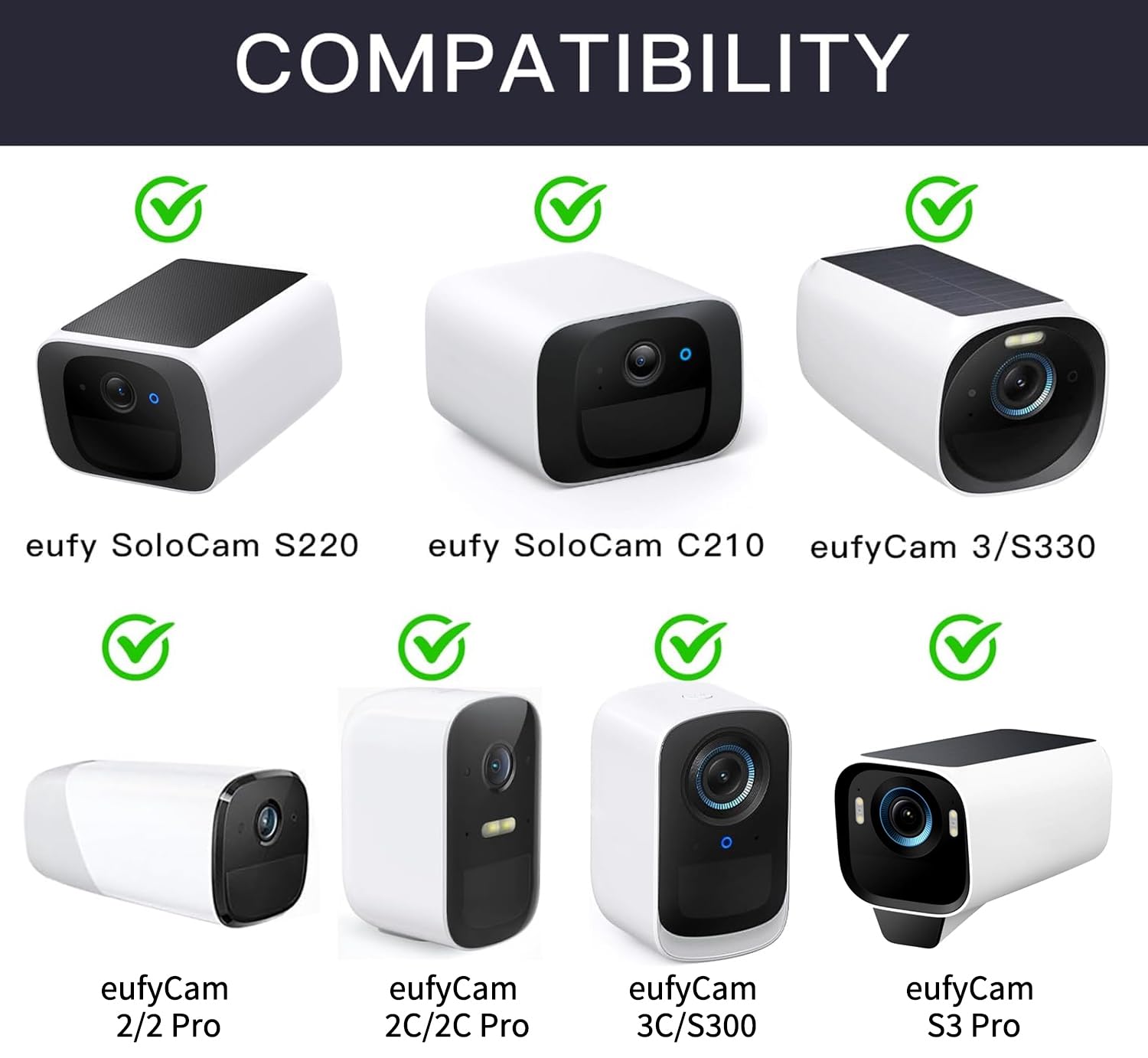 ✔ Compatibility: This gutter mount is unique designed for eufyCam 2C/2C Pro, 3/S330, 2/2 Pro, S3 Pro, 3/S330, 3C/S300, also for SoloCam S220/C210, also fit for other eufy cameras with 1/4 threaded hole. (All cameras are NOT Included)