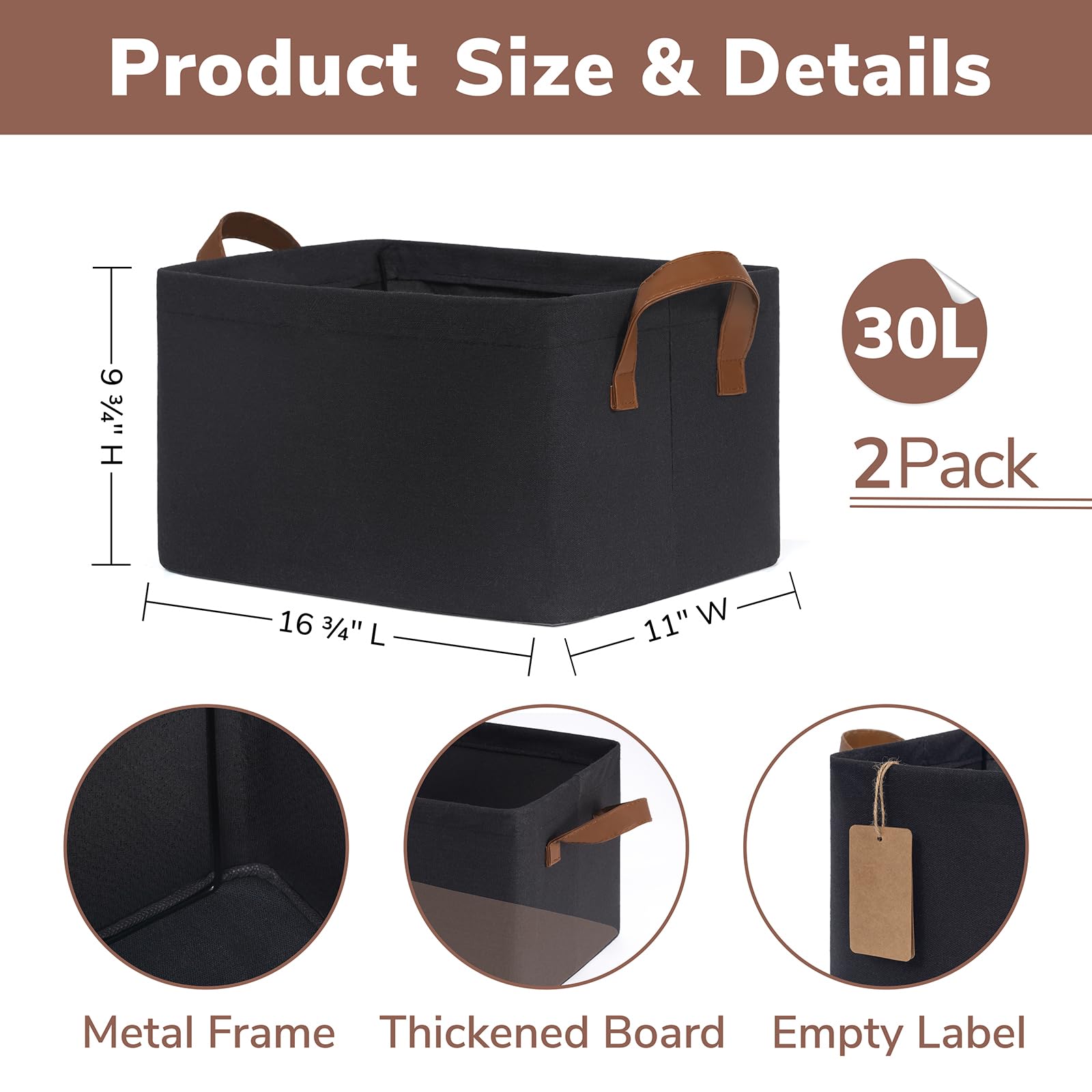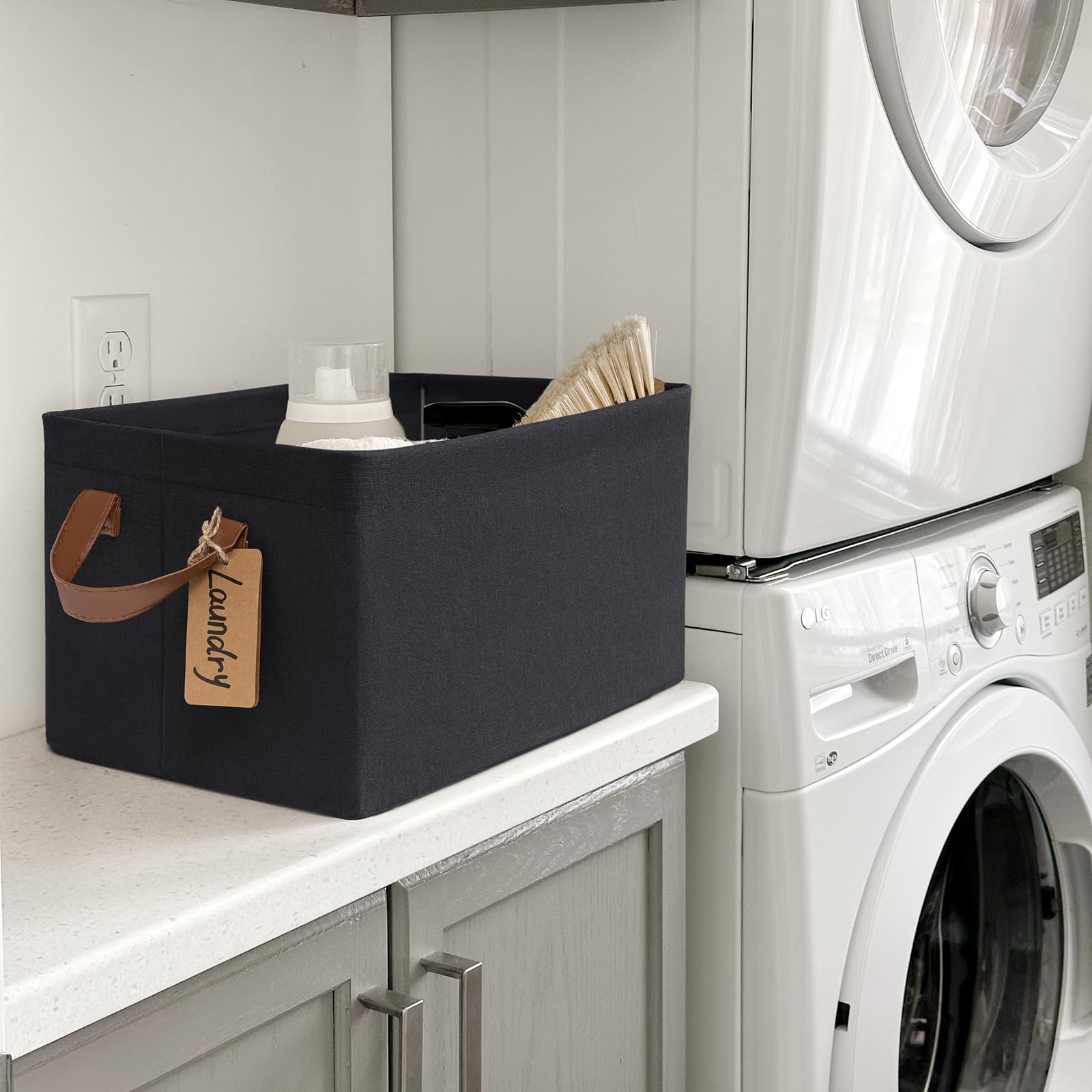 Stylish & Decorative: With leather handles and a neutral color, these black storage bins add a touch of elegance while serving as functional storage solutions. They're an ideal choice for a nursery's shelves or under the crib for storing baby essentials and clothing