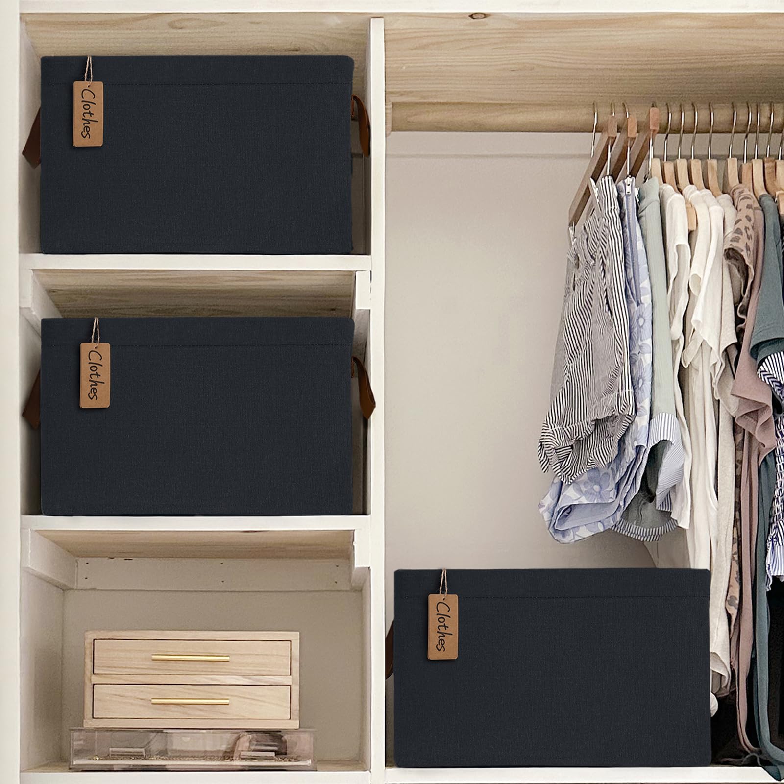 Space-Saving Design: When not in use, these closet storage bins can be folded to maximize simplify storage. They'll help you keep your living area organized and clutter-free without sacrificing style or functionality