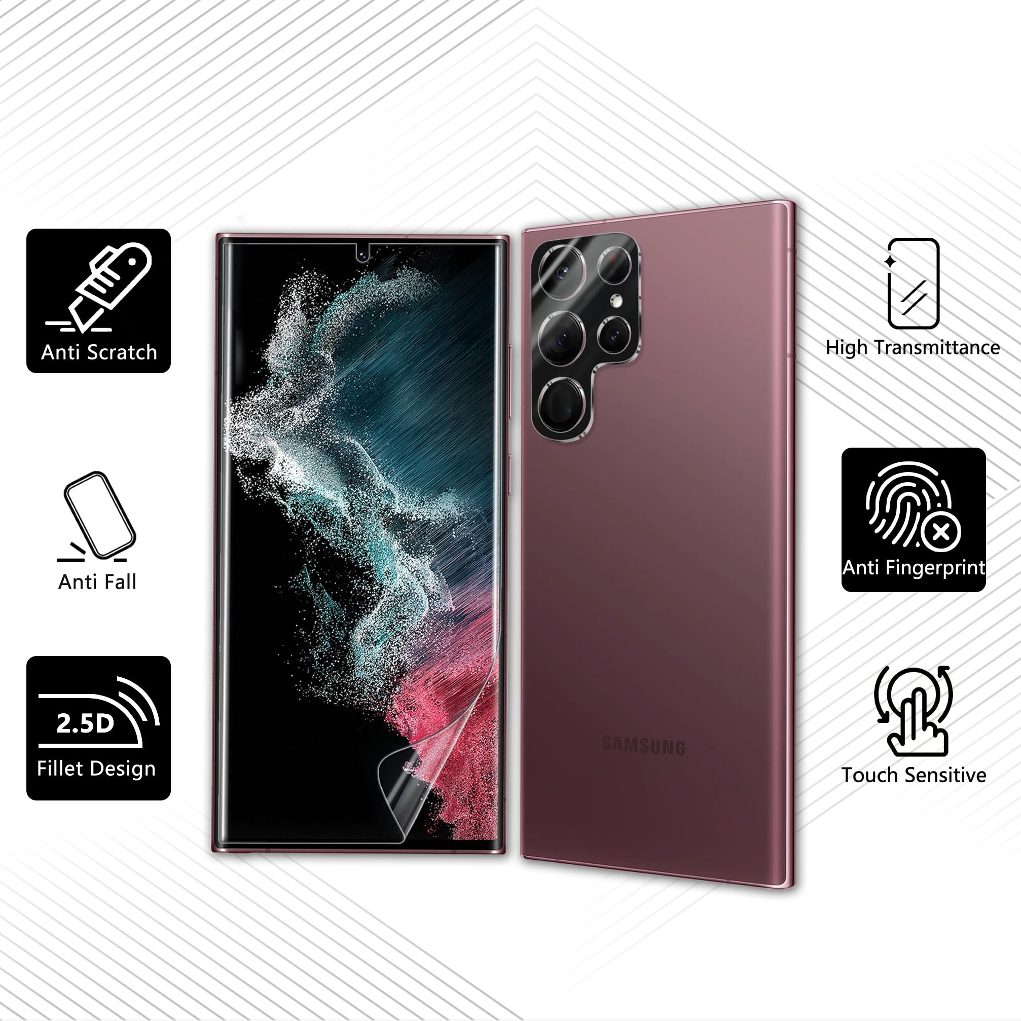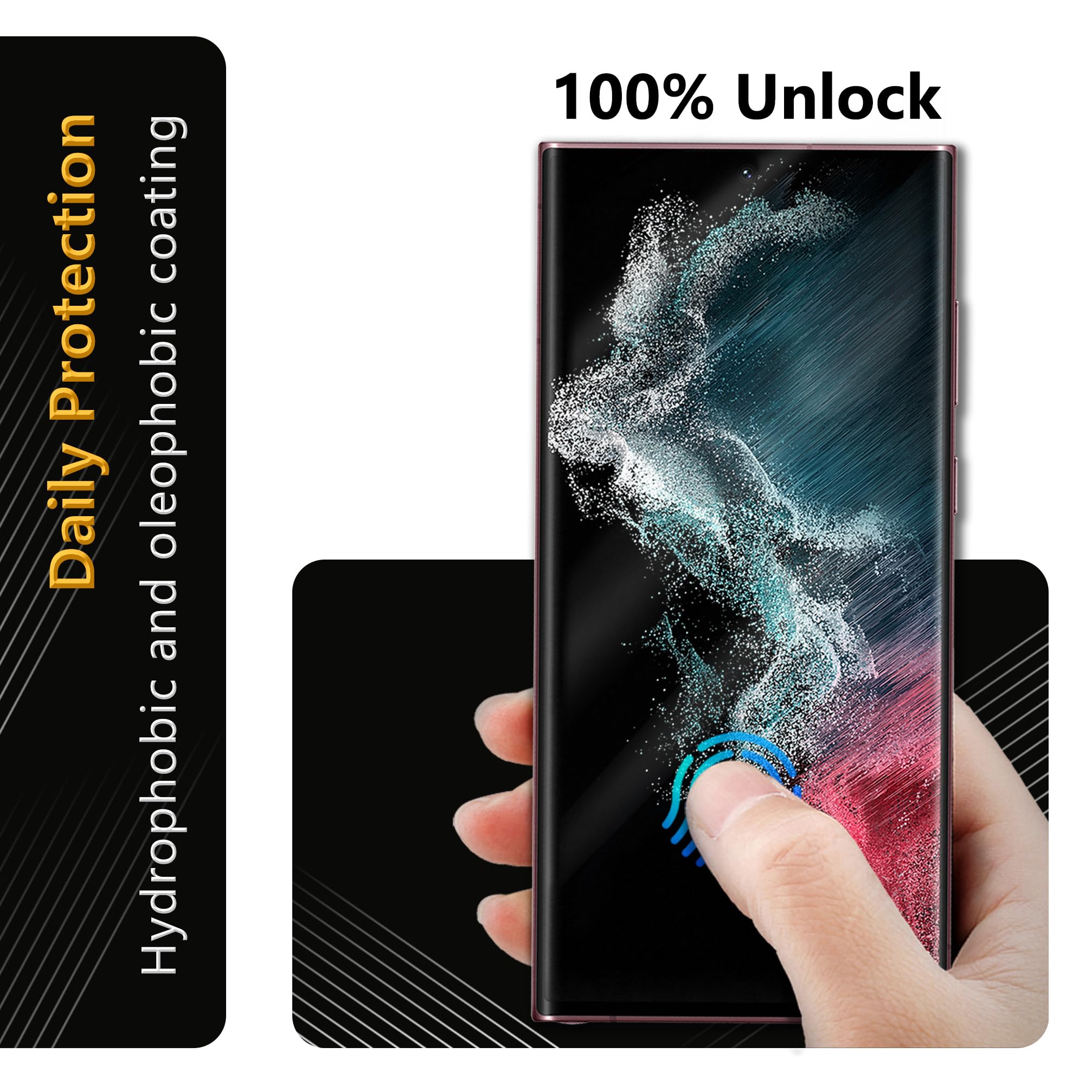 SensorFit Film: The Samsung S22 Ultra soft film is ultra-thin, high-fitting and made of high light-transmitting material. It can perfectly adapt to the under-screen fingerprint sensor and avoid light refraction interference from tempered film. No need to press repeatedly or adjust the angle during unlocking, one-touch fingerprint recognition makes each unlocking accurate and smooth