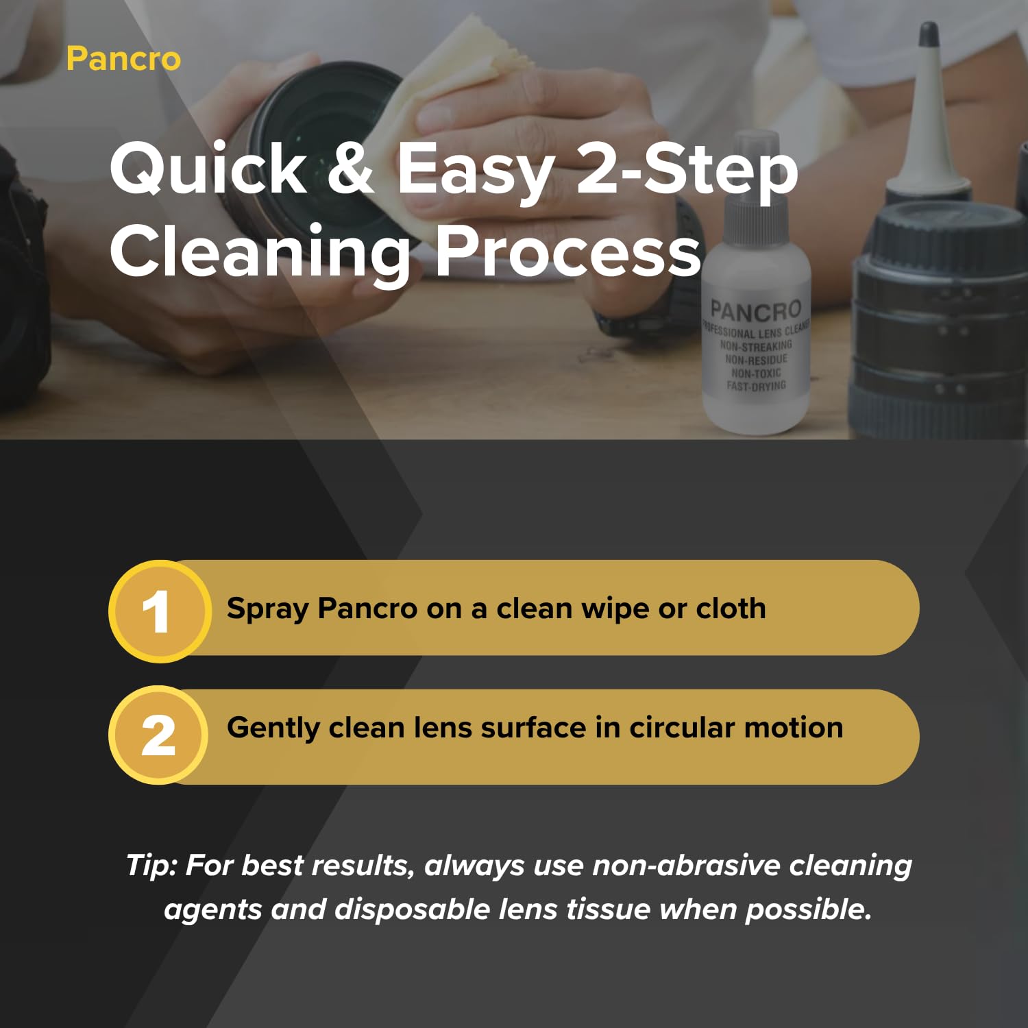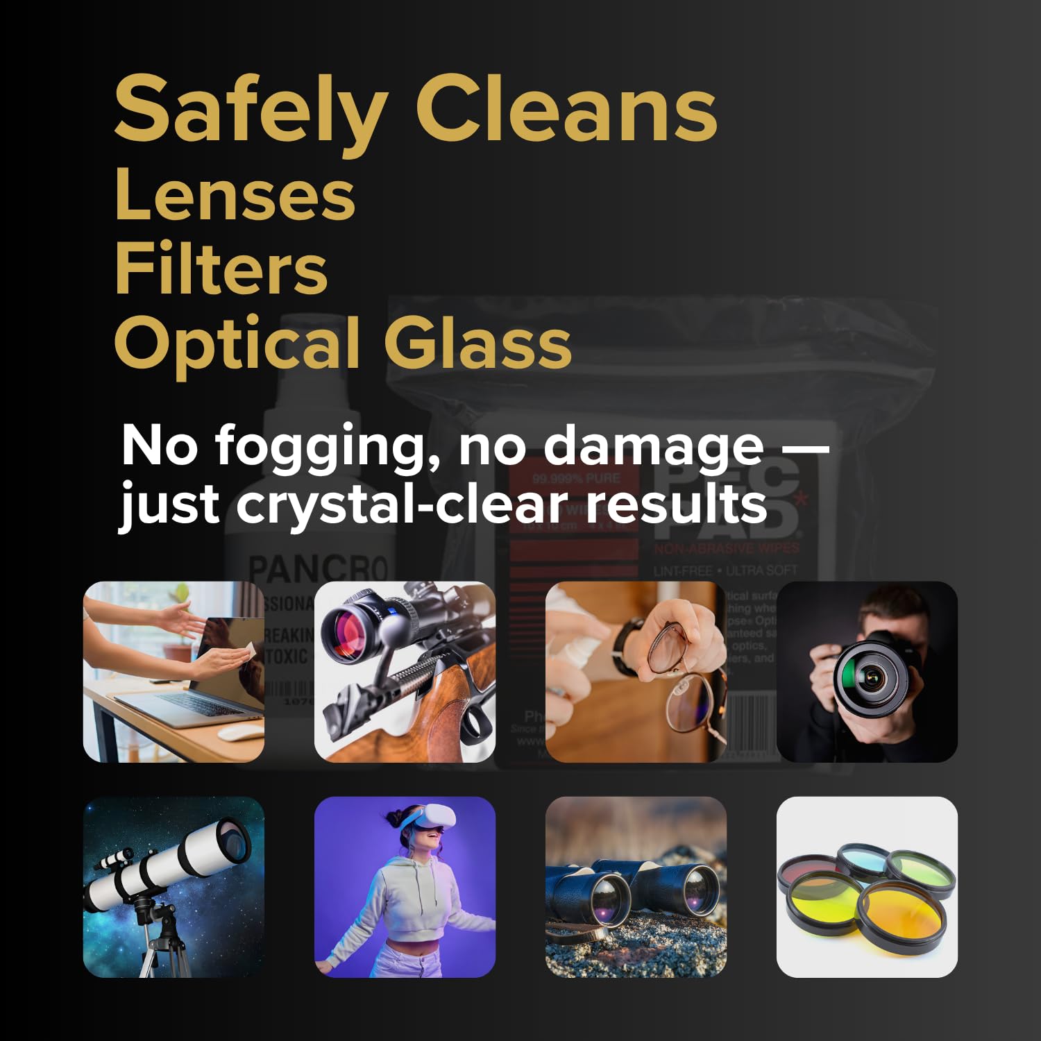 Formulated for professional camera lenses and optical equipment: Ideal for photographers, videographers, and content creators. Also safe and effective for eyeglasses lens cleaner, eyeglass cleaner, sunglasses cleaner, phone screen cleaner, tablet screen cleaner, binocular cleaner, telescope cleaner, and gun sight clean and other coated glass surfaces.