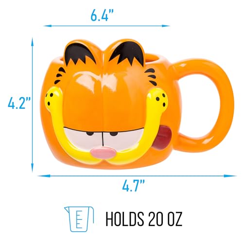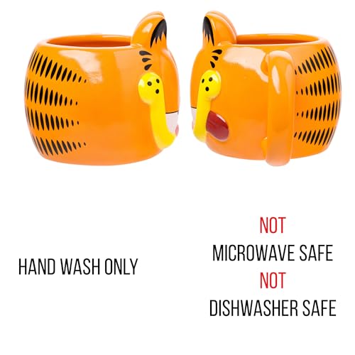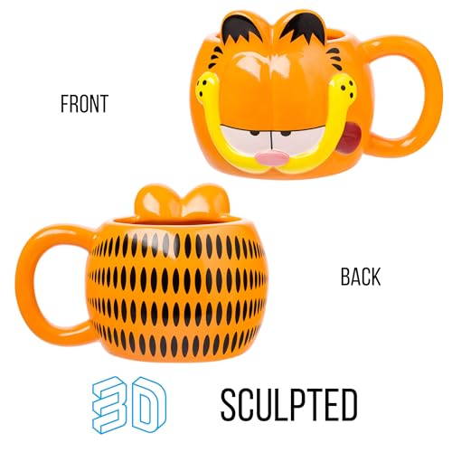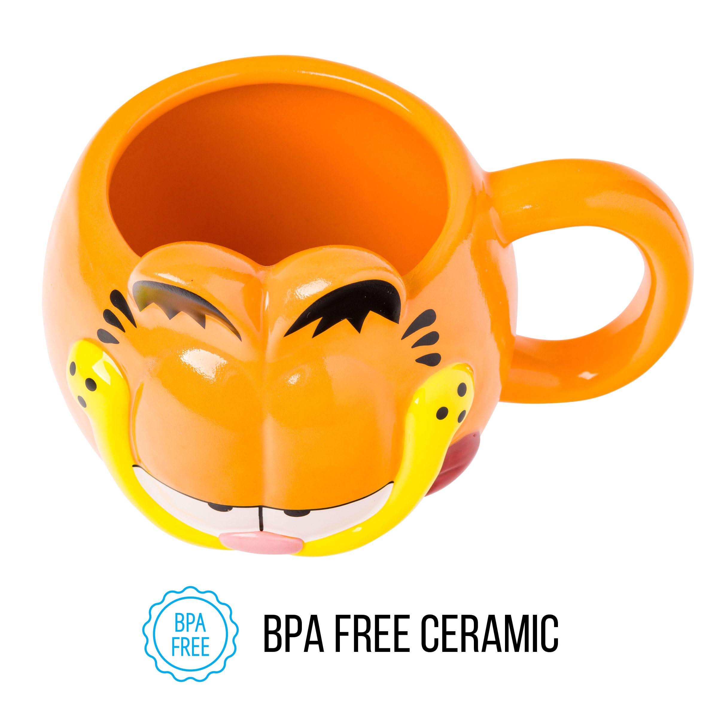 GARFIELD MUG: Enjoy your favorite beverages with this Garfield 3D sculpted ceramic mug. 3D ceramic mug is sculpted in the shape of Garfield’s face. This mug showcases this cat’s hysterical personality, making it a great addition to any fan’s collection.