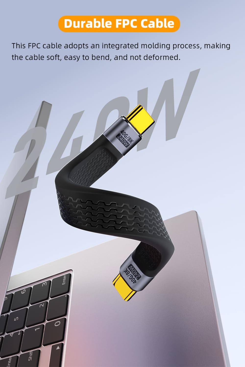 【Durable FPC Cable】This FPC cable adopts an integrated molding process, making the cable soft, easy to bend, and not deformed. And it can withstand over 10000 bending tests, making it more durable and aesthetically pleasing than other cables.