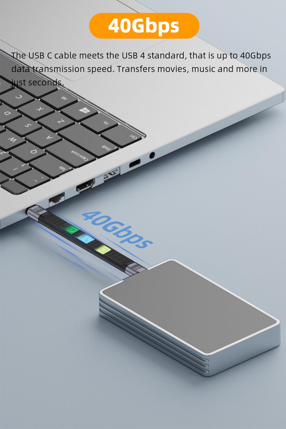 【40Gbps Data Transfer】The USB C cable meets the USB 4 standard, that is up to 40Gbps data transmission speed. Transfers movies, music and more in just seconds.