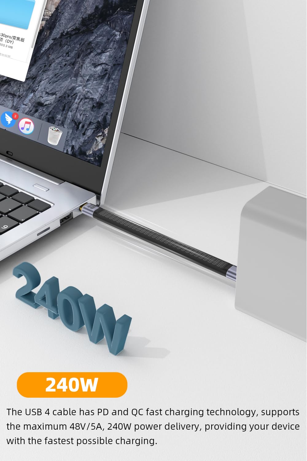 【240W Fast Charging】The USB 4 cable has PD and QC fast charging technology, supports the maximum 48V/5A, 240W power delivery, providing your device with the fastest possible charging.