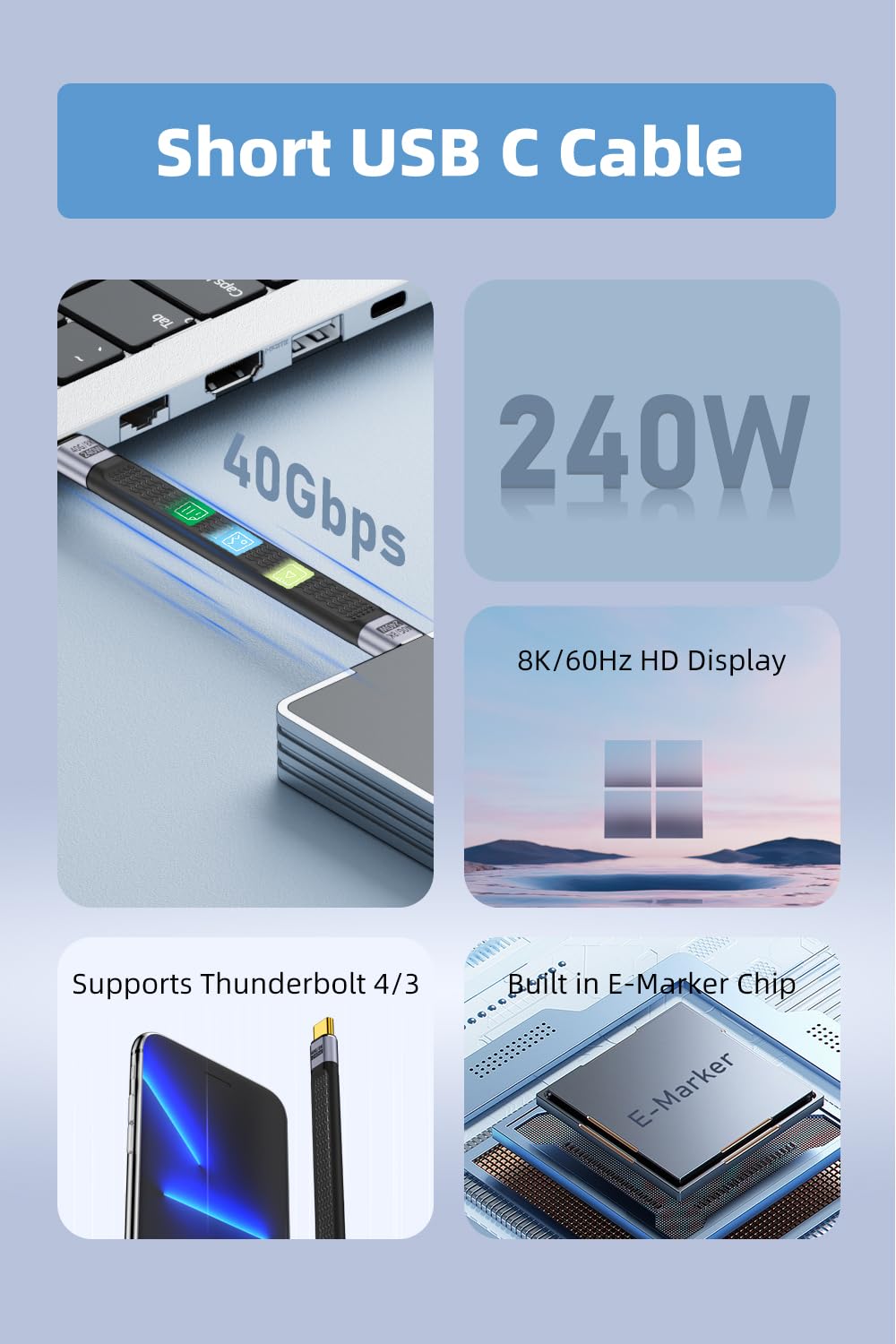 AreMe Short USB C Cable 5.3 inch, USB C to Type C 240W Fast Charging USB 4 Cable Supports 8K HD Display, 40Gbps Data Transfer for Thunderbolt 4/3, Laptop, Tablet, Phone and More
