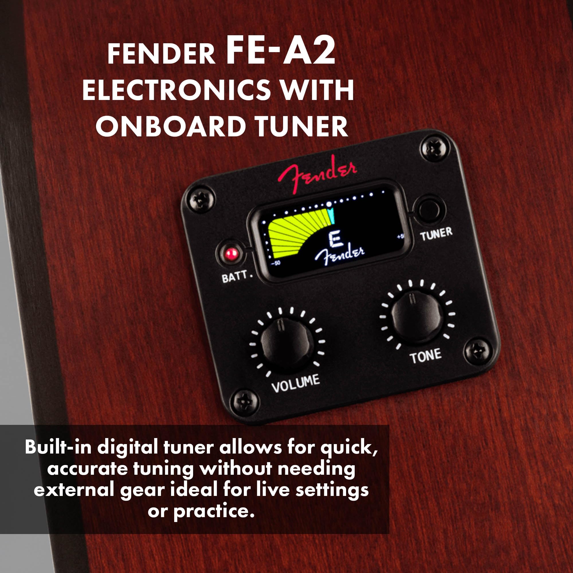 ACCURATE & AMPLIFIED: Sealed-gear tuning machines ensure accurate tuning while the walnut bridge enhances tone and onboard Fender electronics provide built-in volume and tone controls for effortless amplification
