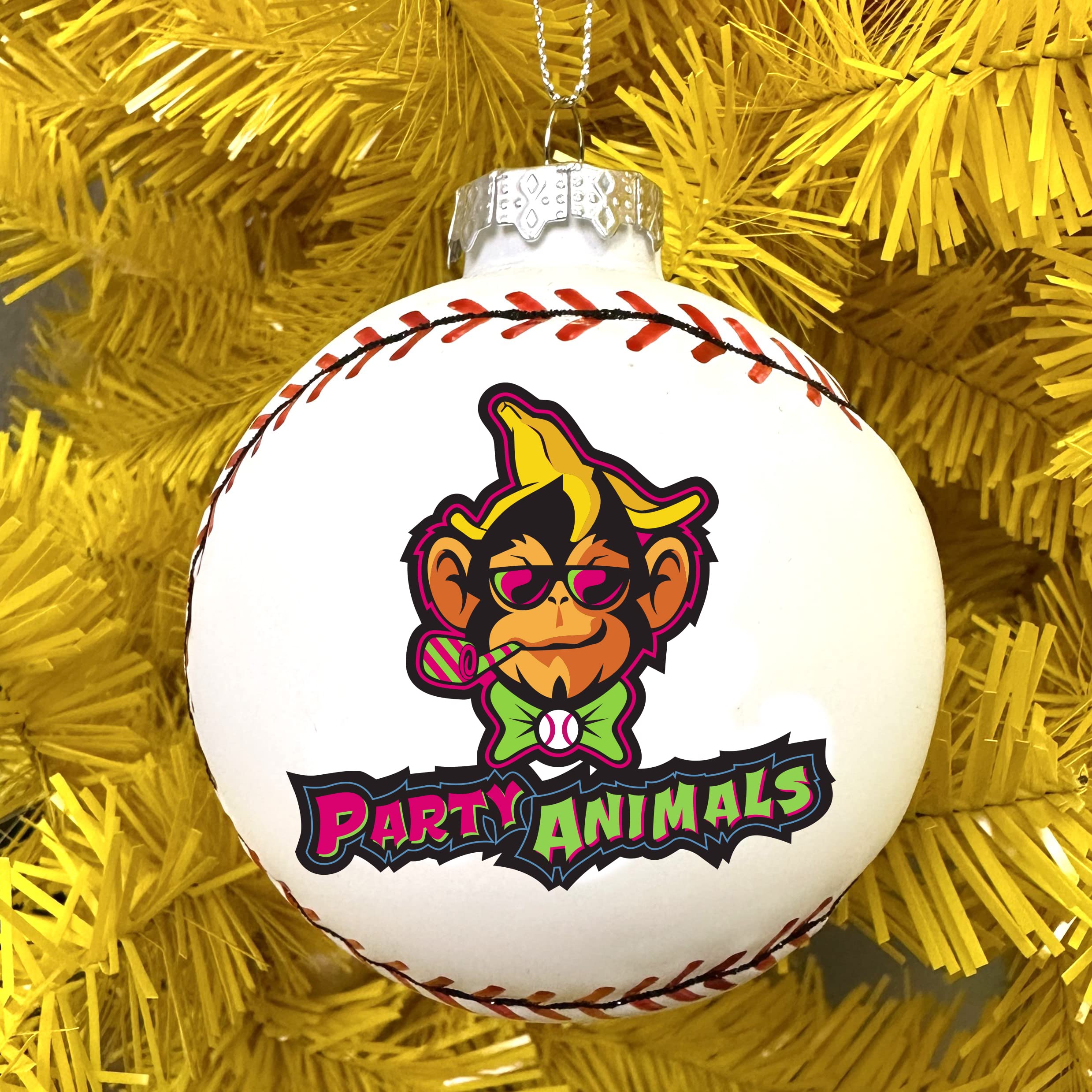 These ornaments are officially licensed Savannah Bananas / Party Animals products.