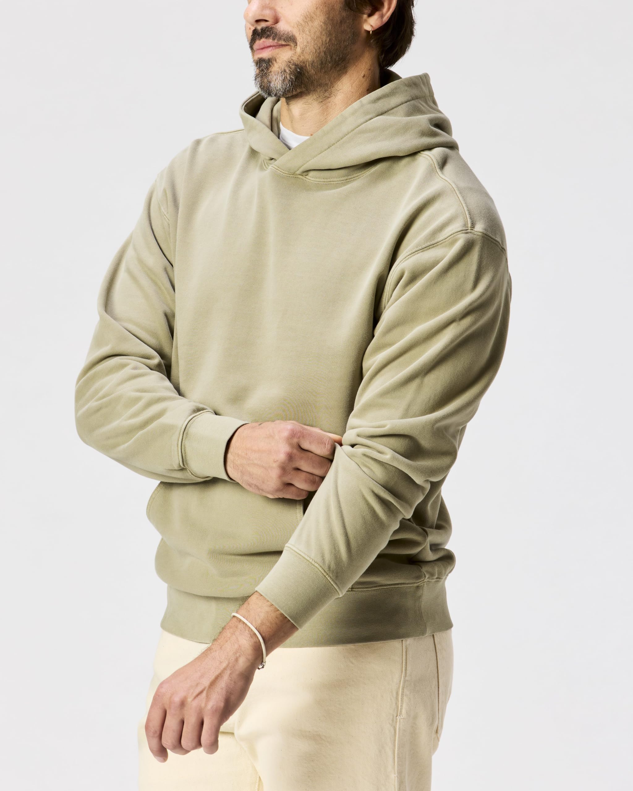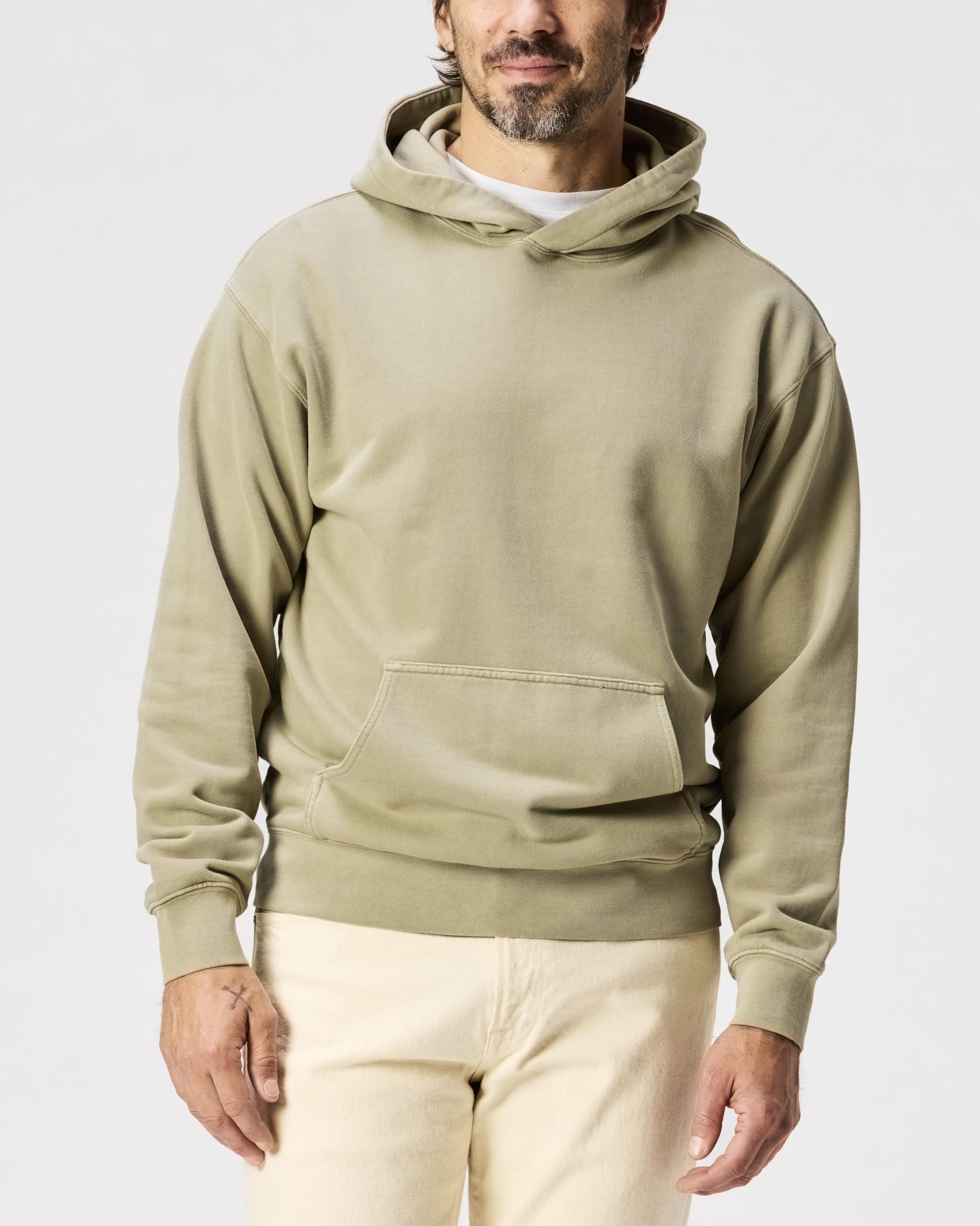 Garment-Dyed Richness: Experience the unparalleled depth of color with our midweight basic mens hoodie, achieved through a garment-dyed process that ensures a striking hue and a soft, lived-in feel. The Midweight Terry Pullover Hoodie builds off this century-plus legacy with a garment-dyed fabric for a softness you won't want to take off.