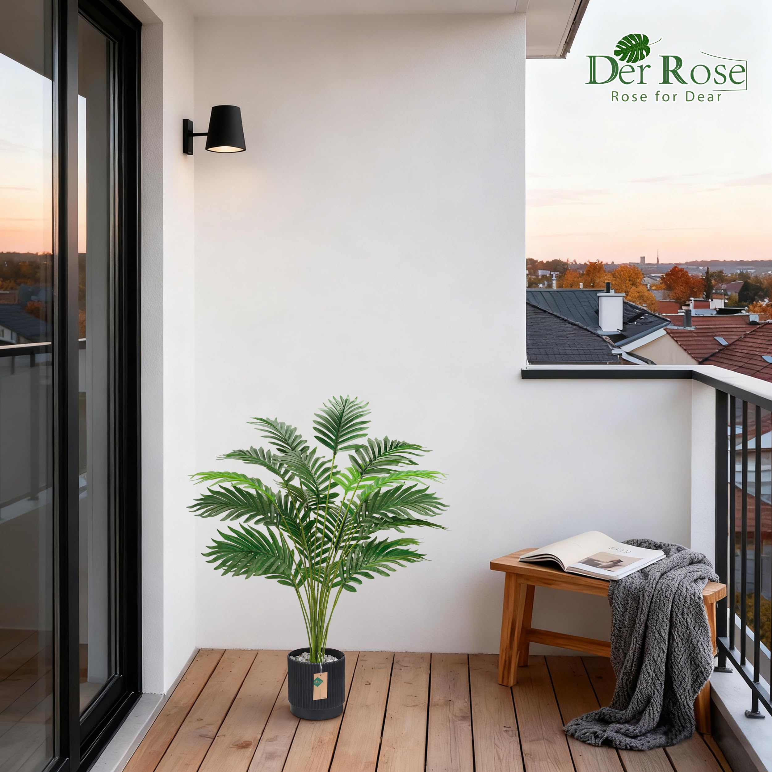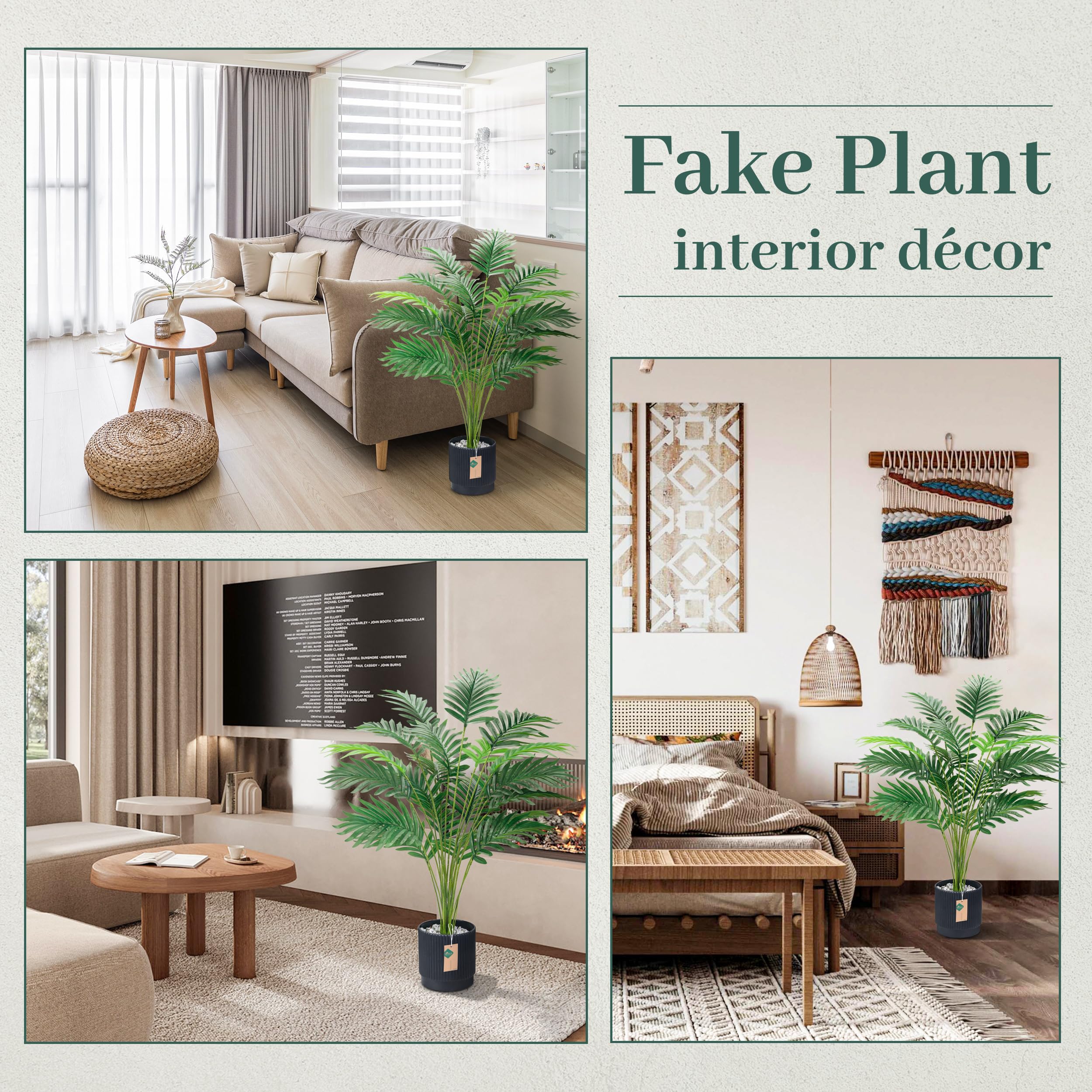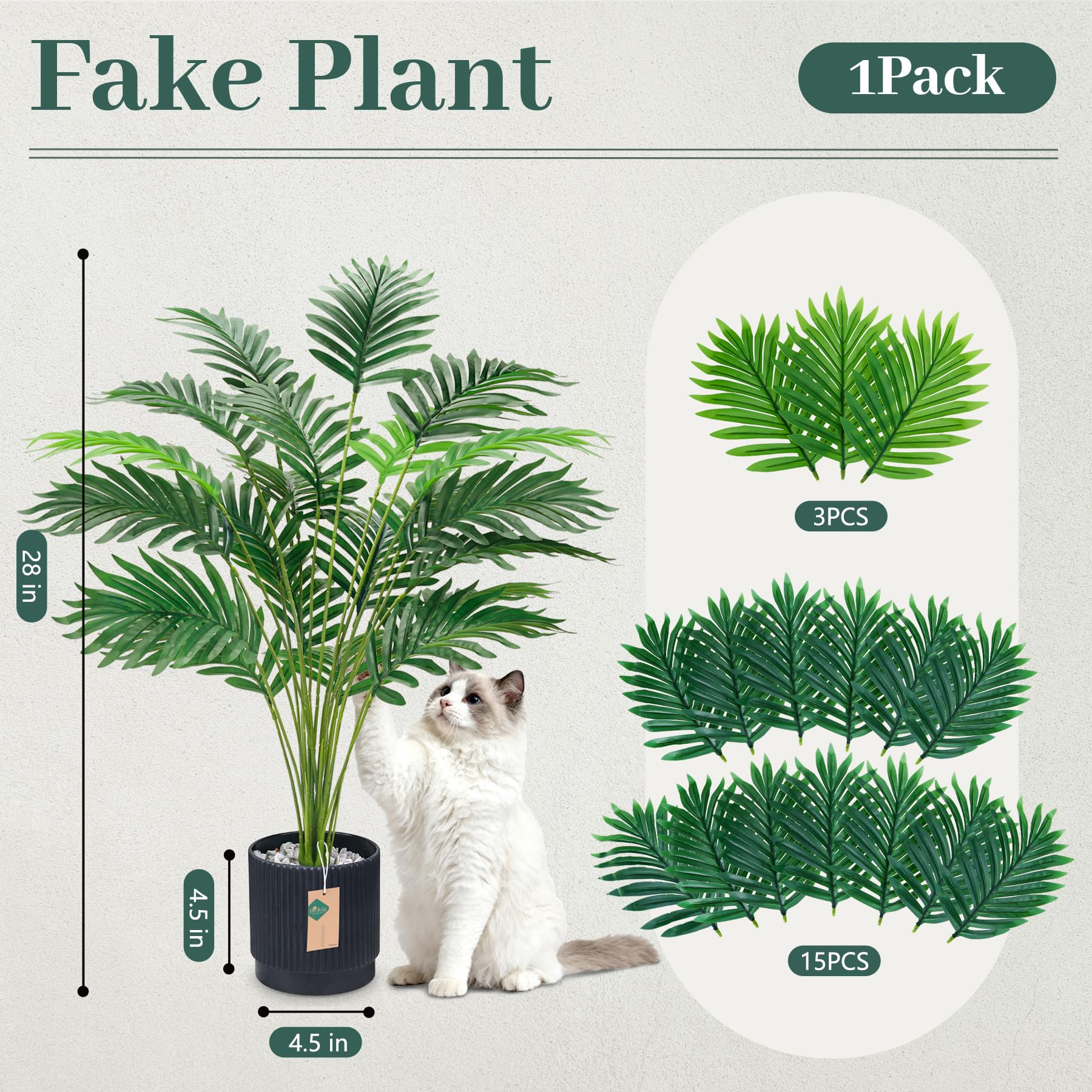 Contents and Dimensions: Includes 1 pack 28" black pot with palm tree. Pot height is 4.5'', width is 4.5'', and the total assembled height is 28'', making fake plants the perfect size for both indoor and outdoor settings