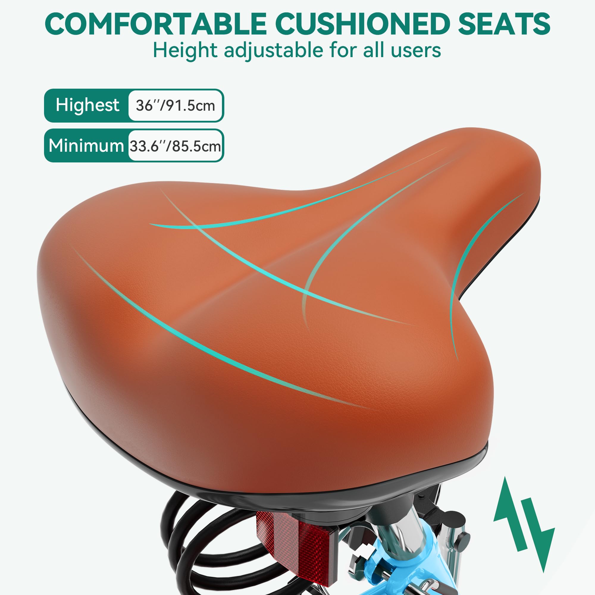Sturdy Dual-Tube Frame: Built with a robust dual-tube frame, this bike for adult boasts immense stability and strength, as it can support up to 330 lbs; Its wide, durable tires offer better traction and wear resistance, for reliability on different terrains such as sandy beaches