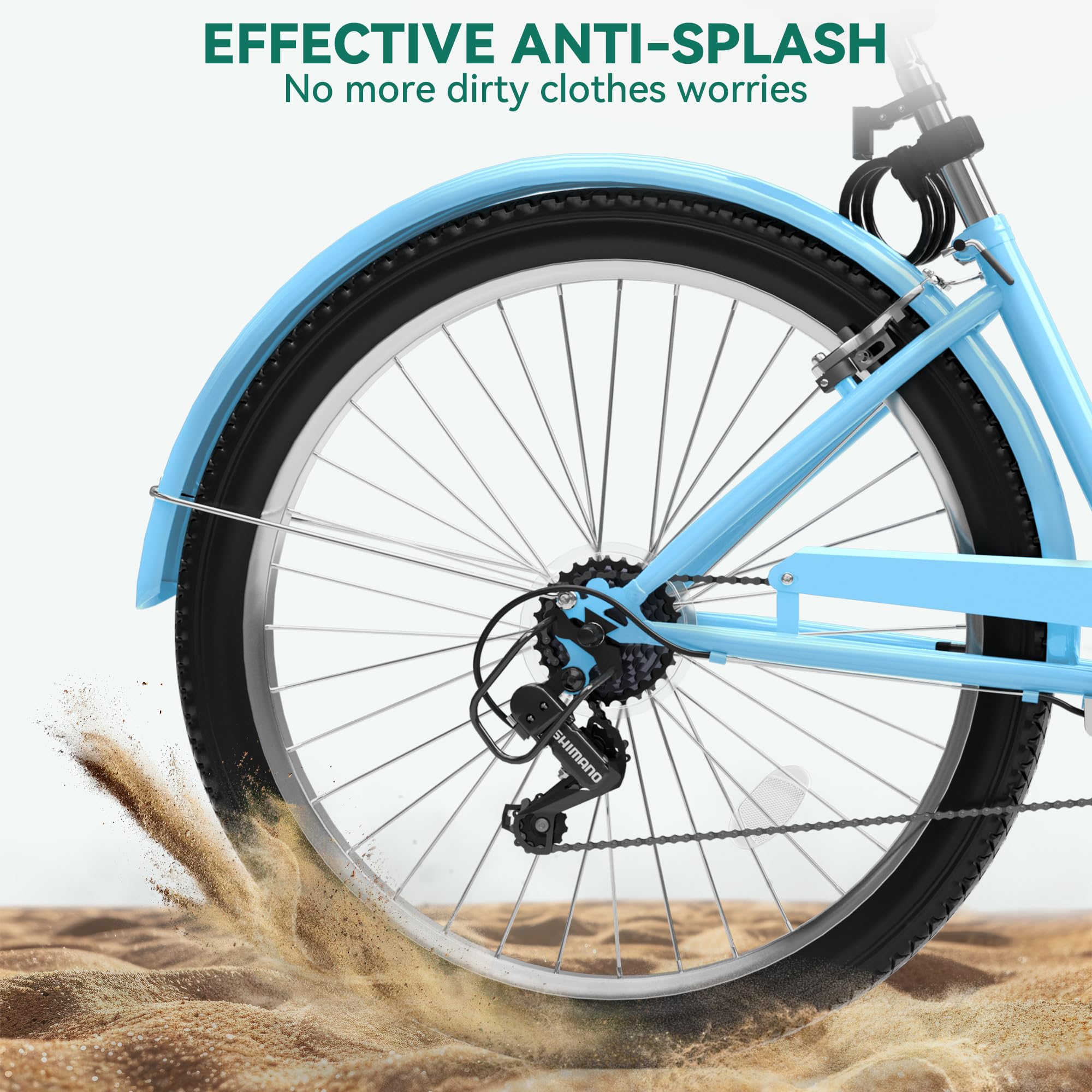 Enhanced Riding: The cruiser bike comes with fenders included to keep you dry and clean by effectively blocking splashes; Setup is quick and easy with 85% of the bike pre-assembled