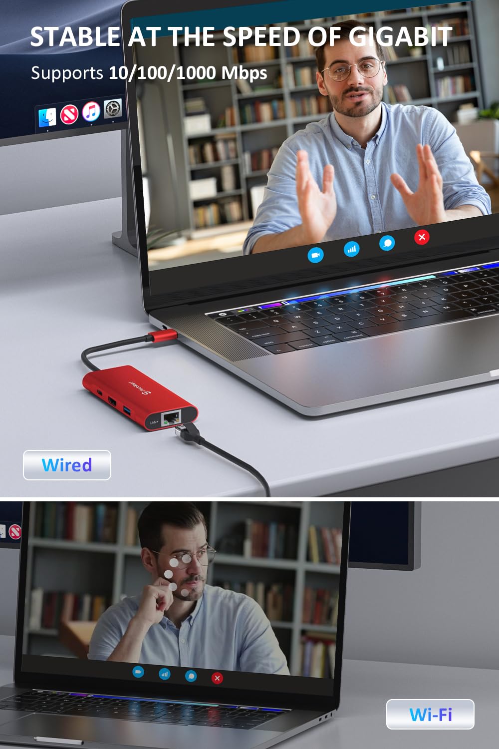 【Experience Lightning-Fast】 Upgrade your connectivity with our USB-C hub's 5Gbps data transfer and 1000M Ethernet port. With lightning-fast transfer speeds and reliable internet connectivity, you can seamlessly stream movies, download large files, and more.