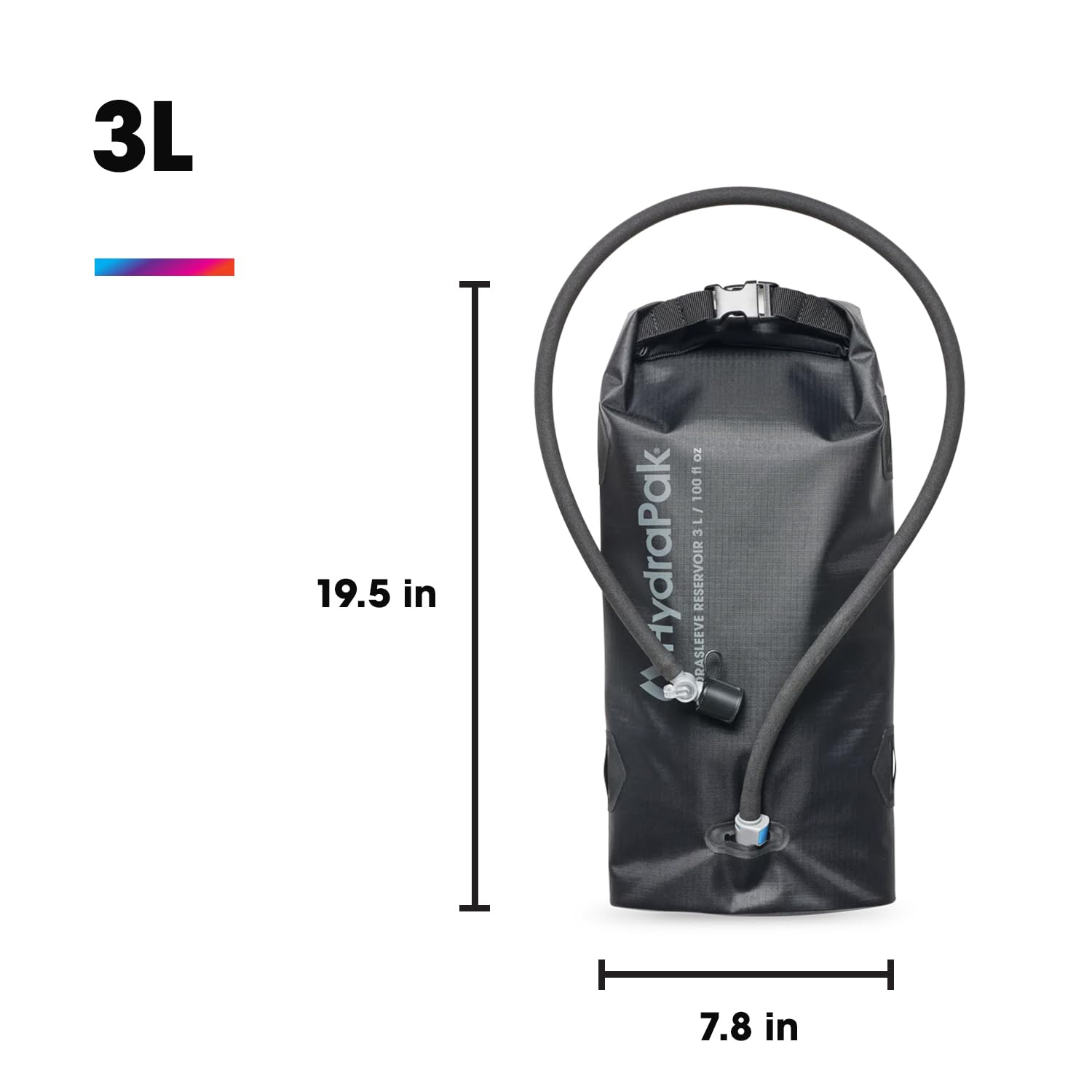 Stay cool without slowing down. The HydraSleeve insulated reservoir sleeve keeps your water flowing cold. Constructed tough so it can be thrown around outside the pack. The included 3L Shape-Shift reservoir is equipped with performance features, including an insulated drink tube & dirt guard. So go on, beat the heat.