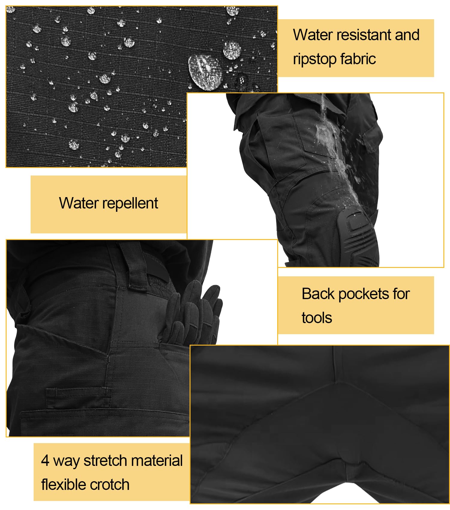 Occasion for men hiking pants: Pants with knee pads for men flex well for a nice range of motion, and look tactical and good. The waterproof pants are suitable for casual wear and outdoor sports, such as hiking, traveling, camping, climbing, cycling,fishing, hunting, jungle, etc. The knee pads provide great protection and is suitable for kneeling in the dirt or gravel and staying comfortable