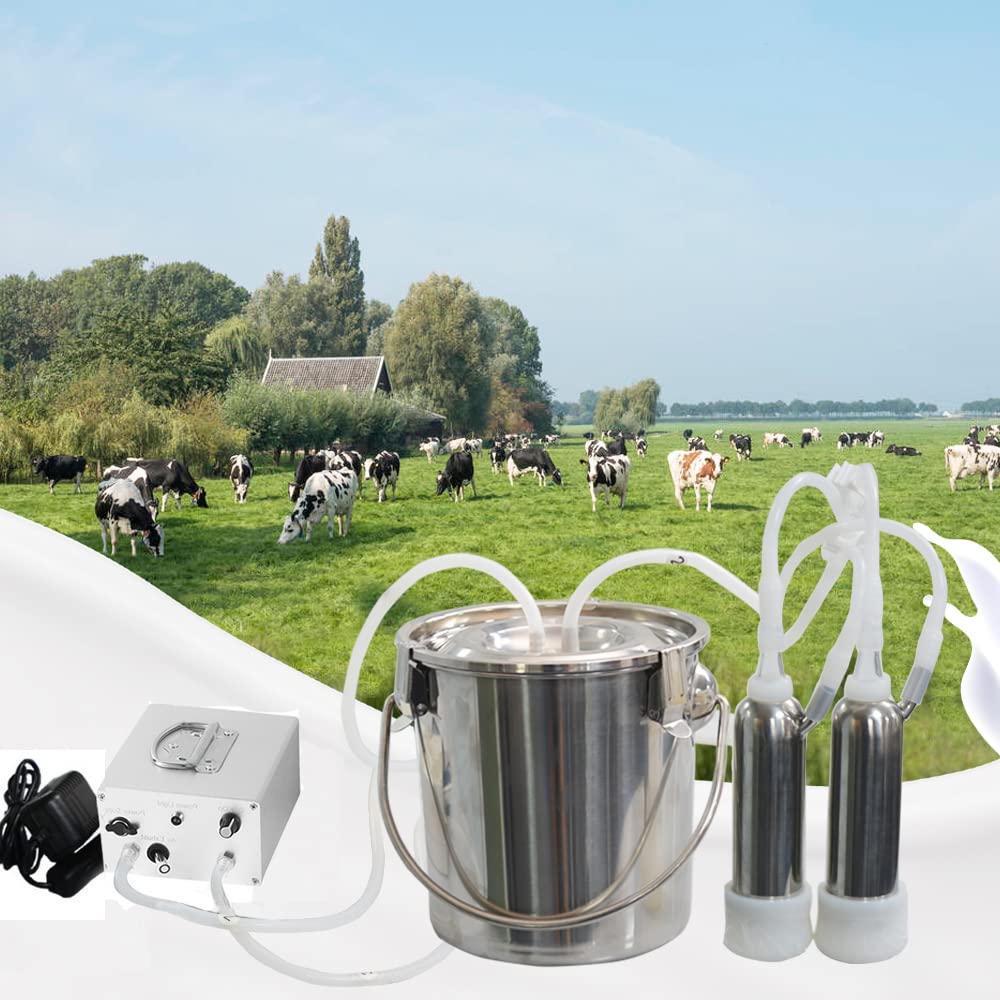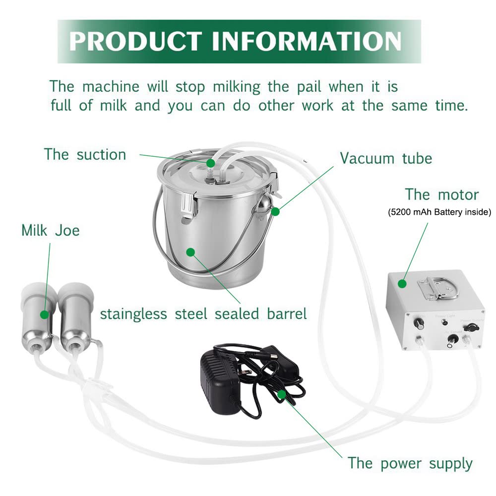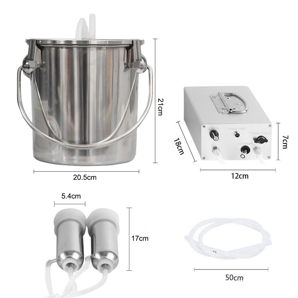 【Folding Handle for Moving Around】The milk bucket is made of premium 304 stainless steel, easy to clean. Folding handle are on 2 sides and inside. Super convenient to carry and pour out milk. 【Easy To Set Up & Clean Up】Quick installation, plugged in to use, easy to clean with 2 brushes, suitable for people with the least technical experience, can be used in farm, family, etc.