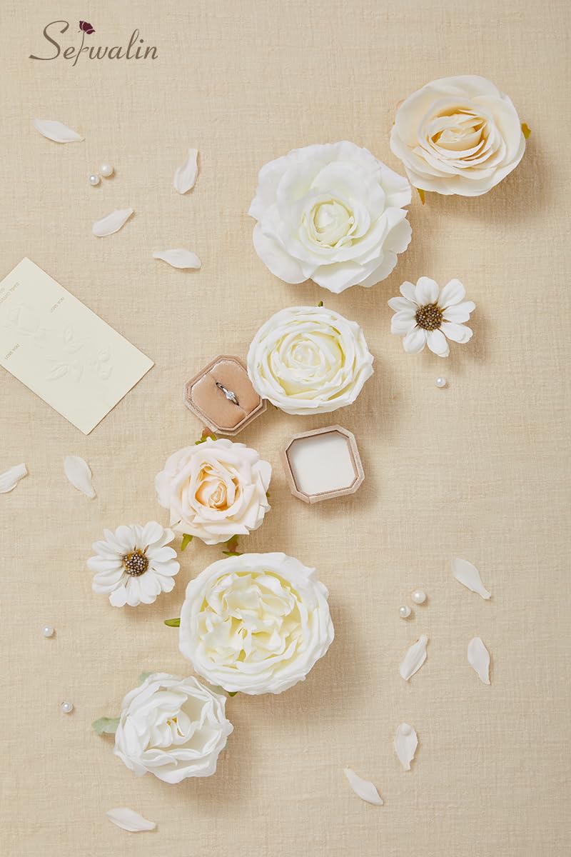 Artificial Flowers for Diverse Needs- This natural white flower box could be the most helpful participator for your wedding, available for bouquets, cake flower, centerpiece, chair and arch decor, garland, etc. Also can be home decor for vase, table decor, events or party decoration, baby shower. Each flower has a bendable stem at the bottom, making them easy to work with, perfect for DIY and crafts
