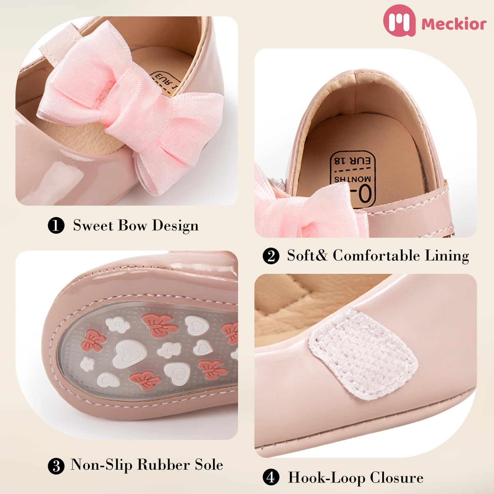 🎀【SAFE&COMFORTABLE】These Baby Girl Mary Jane Shoes Made of High Quality PU Leather.Pass Multiple Safety Tests without Any Stimulation to the Skin.Wide Round Toe Design Relax Your Baby's Feet.The Comfortable and Soft Cotton Lining Makes Your Baby Feel Natural Walking.