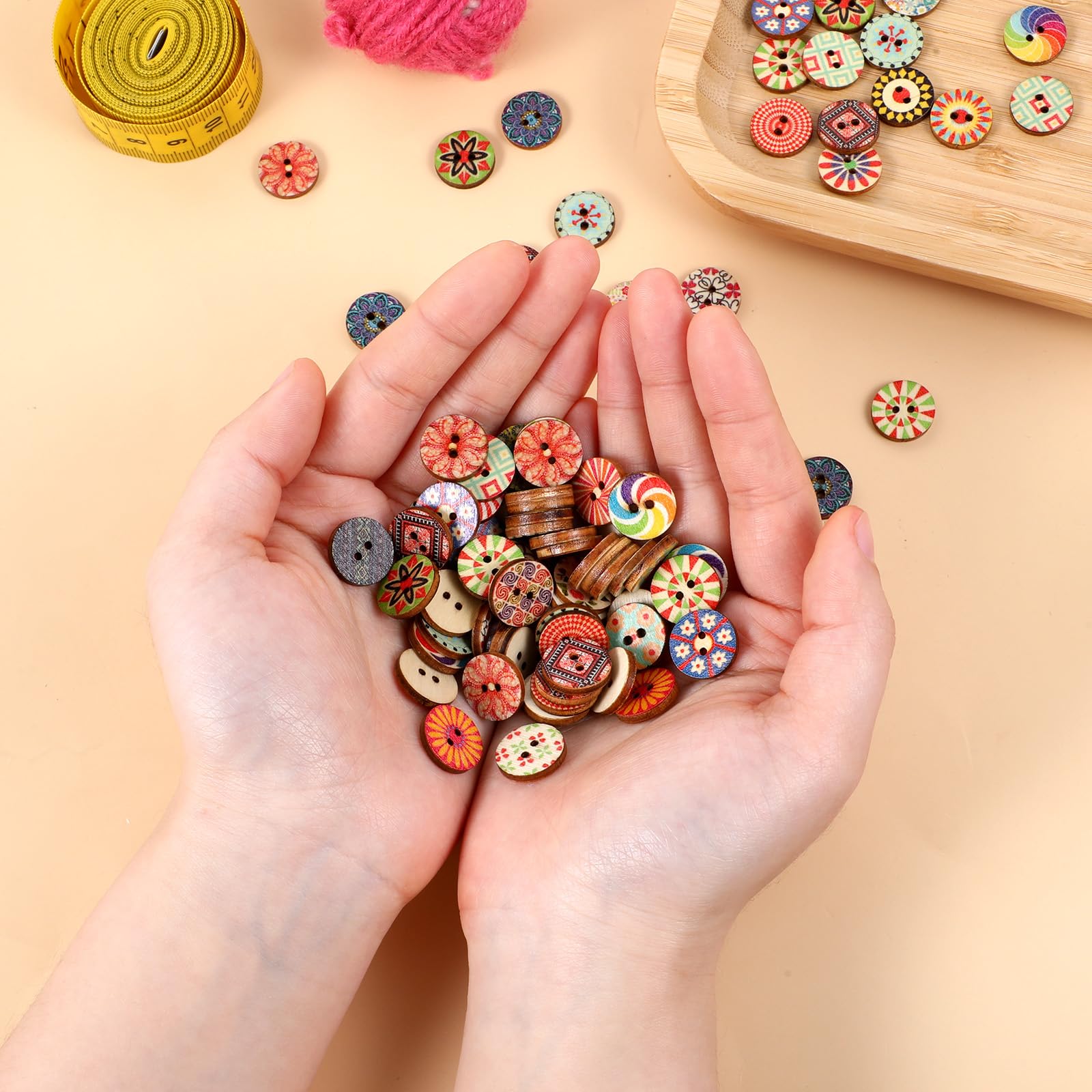 【Premium Quality】Our craft buttons are made from high-quality natural wood, ensuring durability and a smooth surface free from burrs or fading. These assorted buttons are lightweight and easy to handle, making them perfect for various DIY projects.