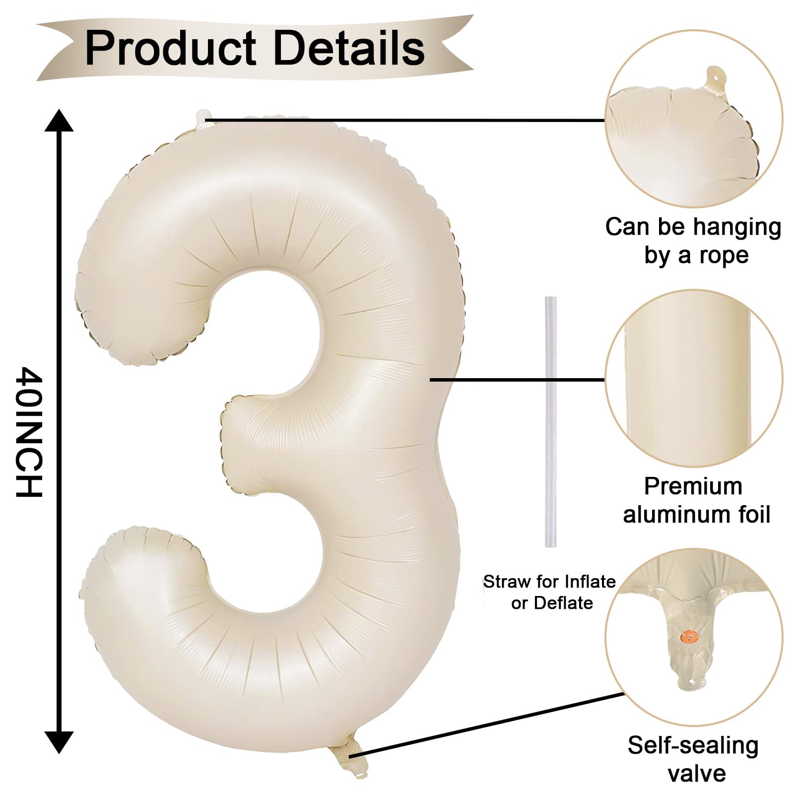 Cream White Number 30 Balloon 40 Inch: Includes 1pc beige "30" balloon and a straw for easy inflation and deflation. This elegant, neutral digital helium balloon is perfect for birthdays, anniversaries, or special occasions like a 30th, 40th, or 50th celebration. Mix and match with other numbers and letters to create a personalized, memorable party setup!