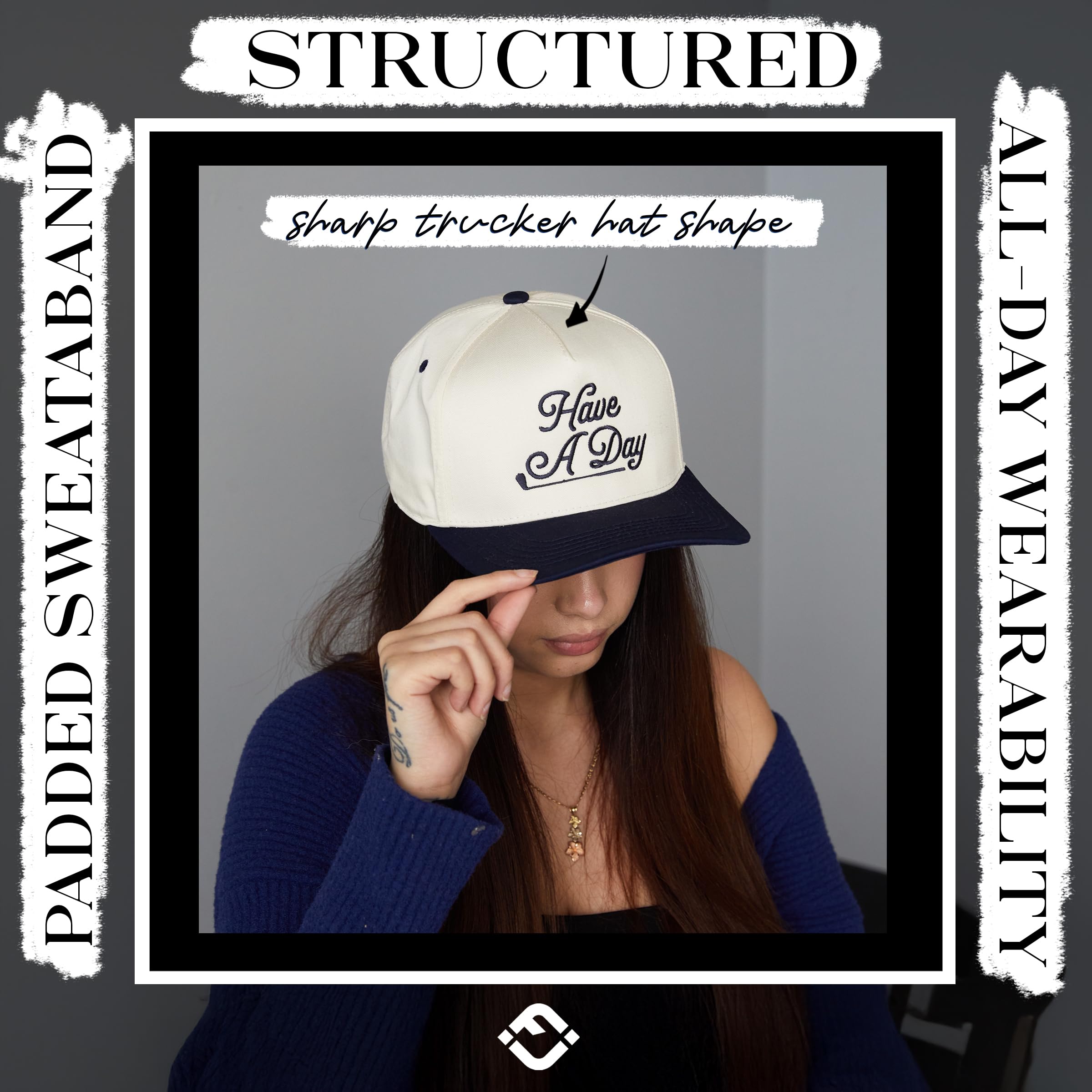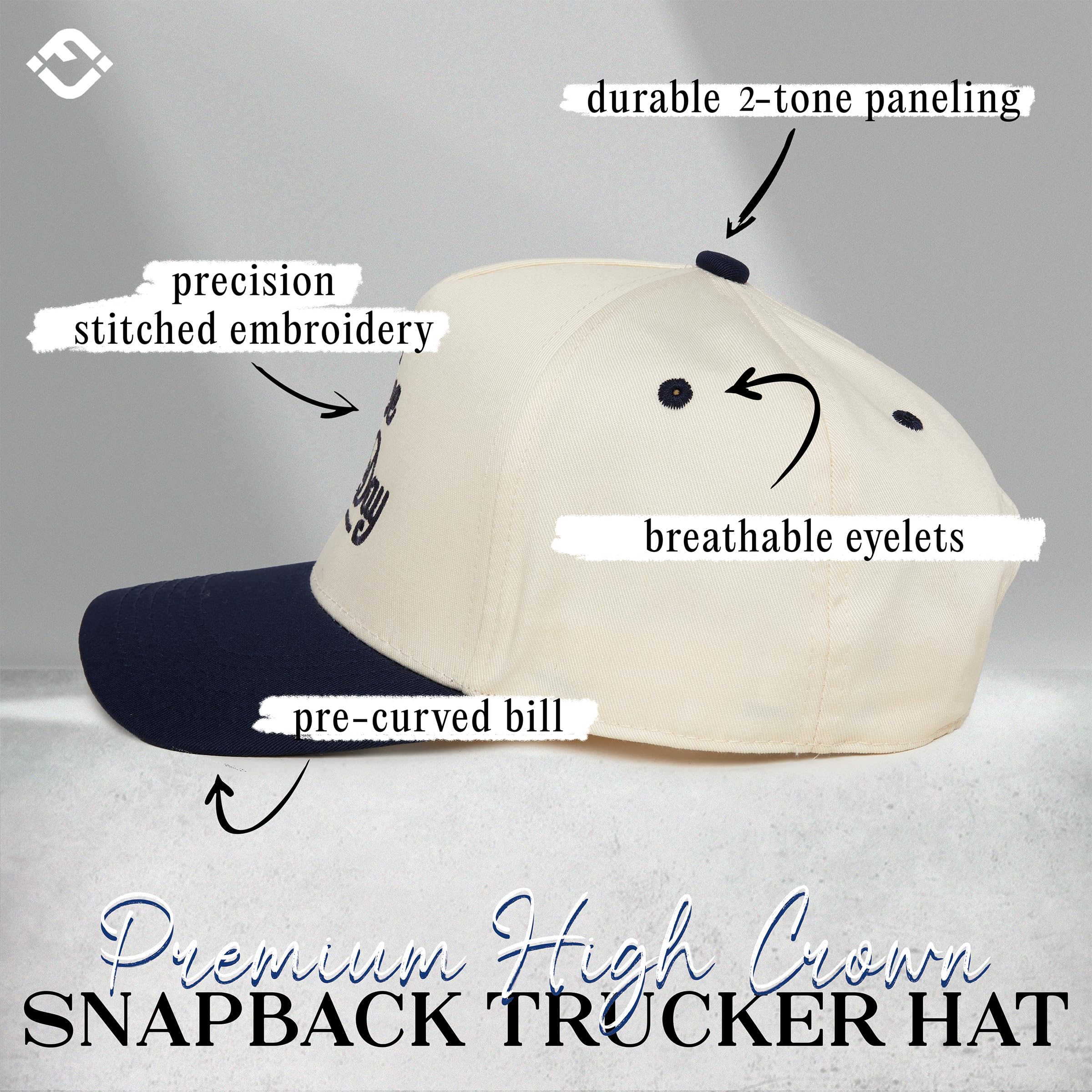 GREAT QUALITY: These two-tone retro baseball caps are 35% cotton and 65% polyester, ensuring a soft, comfortable fit, while also providing durability and breathability. This 5 panel structured hat boast high-quality, detailed embroidery designs, adding a touch of elegance and sophistication to any occasion. Despite their structured design, these hats offer a lightweight feel that contributes to their comfort and suitability for extended wear. Hand wash only.