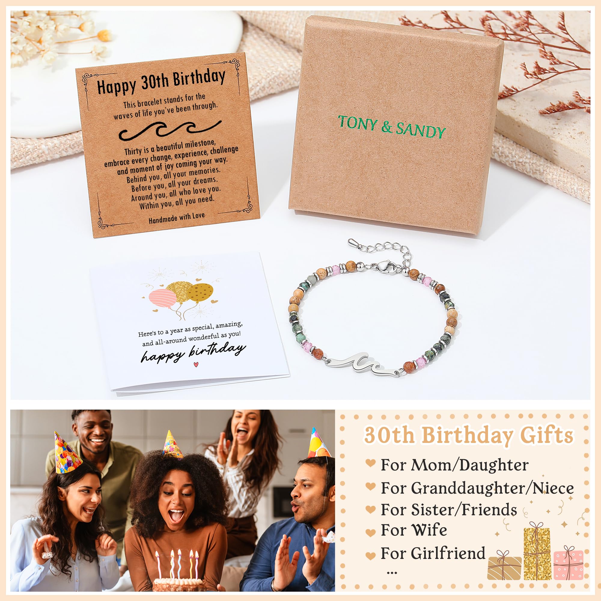 【 30th Birthday Gifts for Women 】This bracelet isn't just a gift—it's a celebration of her fearless spirit. Handcrafted with earthy-toned beads and meaningful wave charm, it embodies 30 years of growth, passion, and unforgettable adventures. Whether she's your soulmate, sister, best friend, or colleague, this accessory daily reminds her she's crafting an extraordinary life.