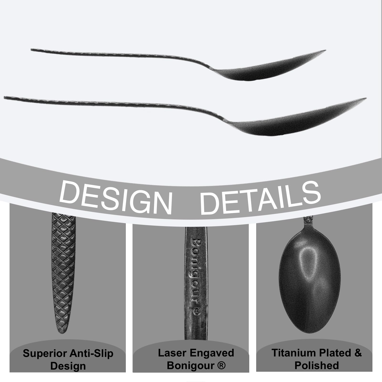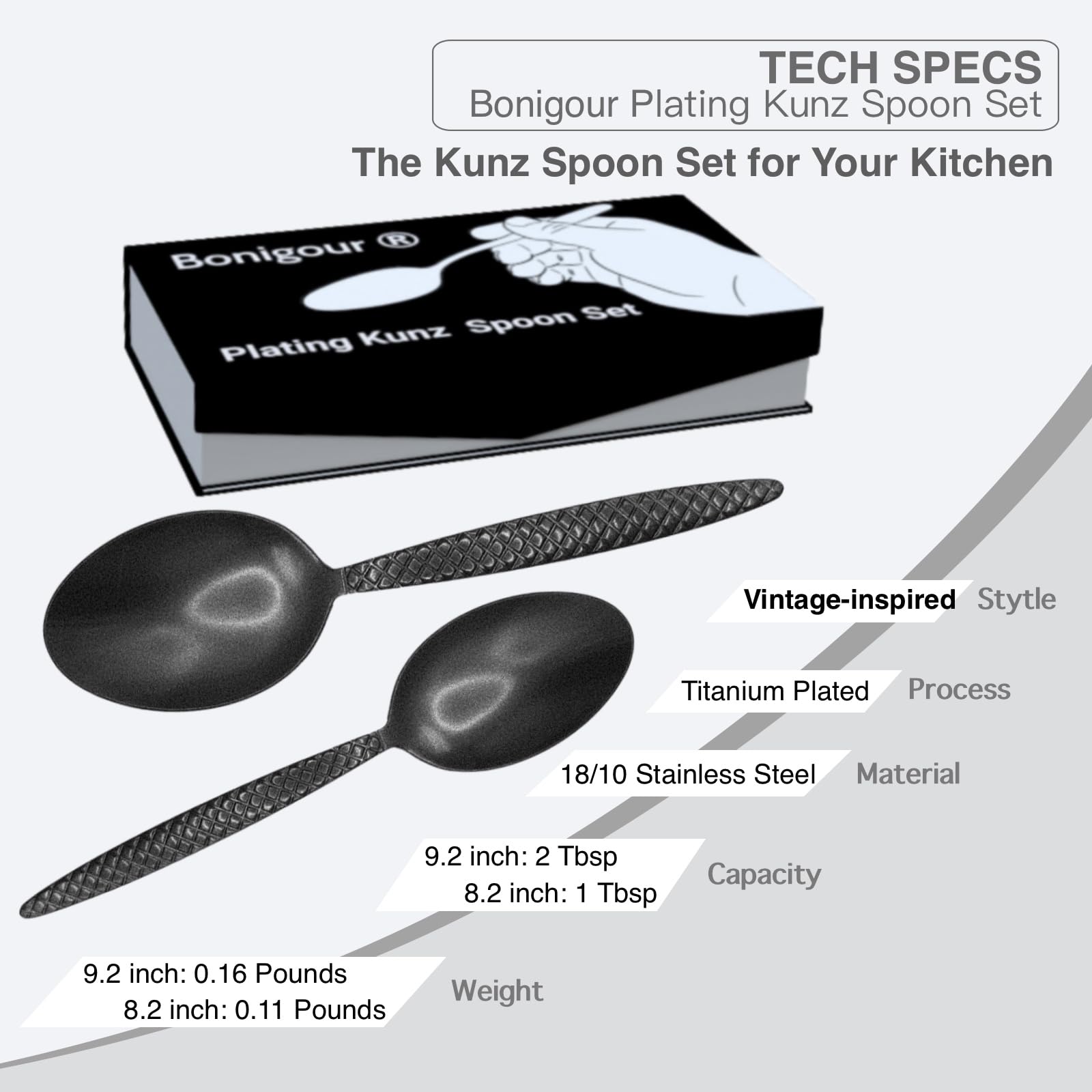 Premium Construction – Crafted from corrosion-resistant 18/10 stainless steel with a titanium-plated finish, Bonigour Kunz spoons offer an elegant appearance, refined texture, and advanced resistance to heat, scratches, and daily use