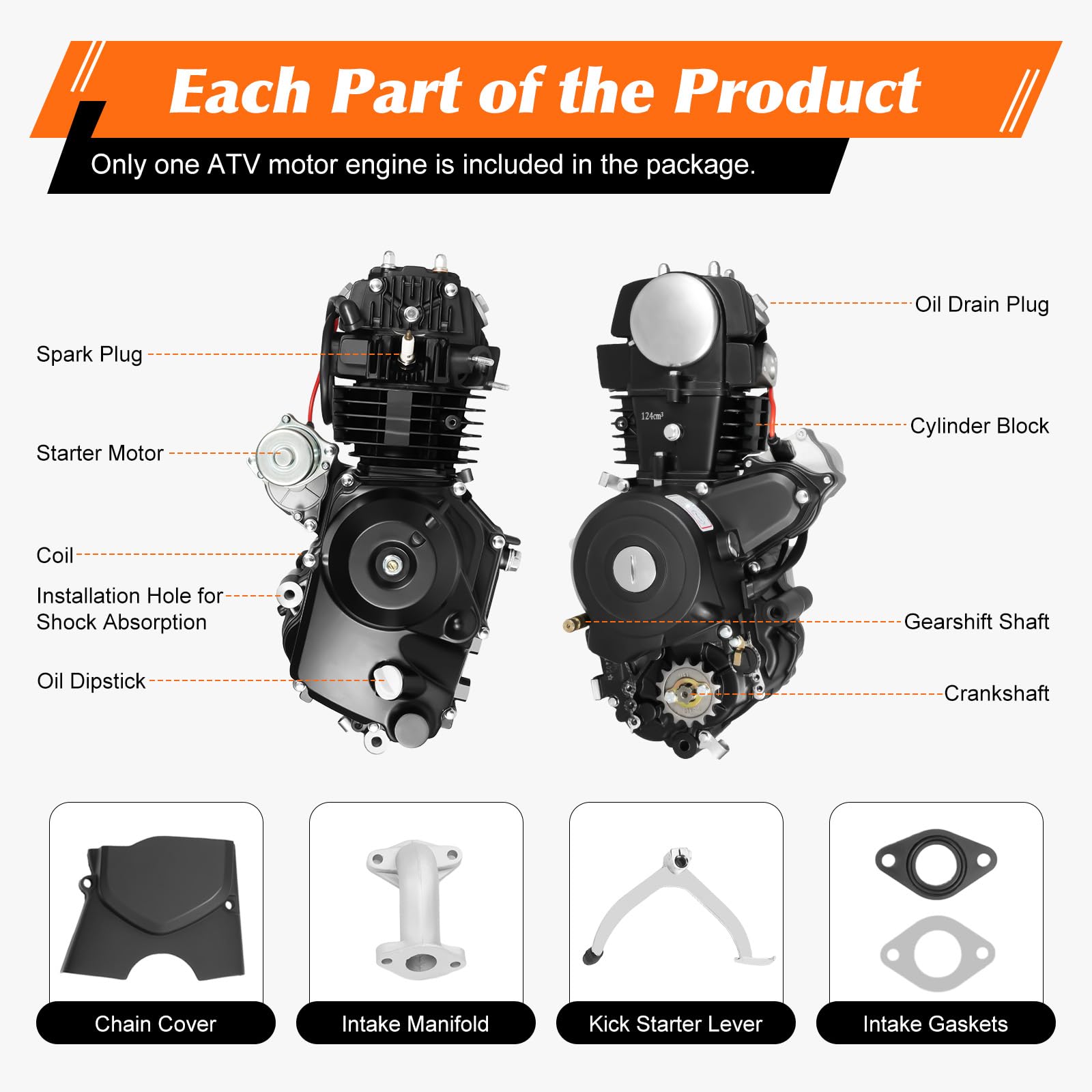 【High Compatibility】The 125cc 4-stroke engine is compatible with many series of go karts and atv. It is highly applicable. The engine is low speed with high torque and has large diameter bearings for crankshaft connecting rod, increasing the reliability of the bearings.