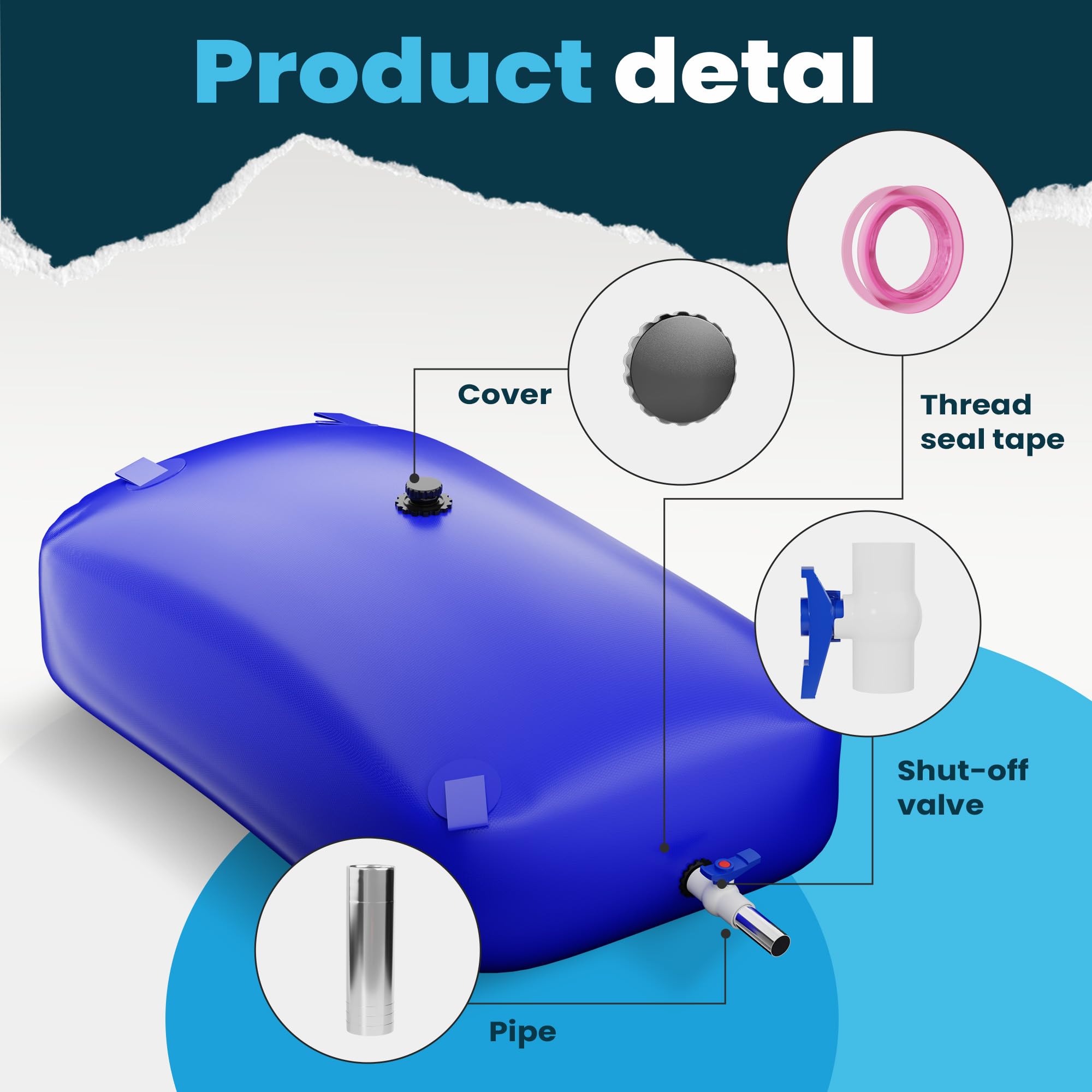 【High-quality Material】Portable water tank is made of double-sided high-density coated PVC material with tough mesh, water bladder sealing against leakage, high-frequency welded sealing structure, and reinforced ribs sealing around the ports.