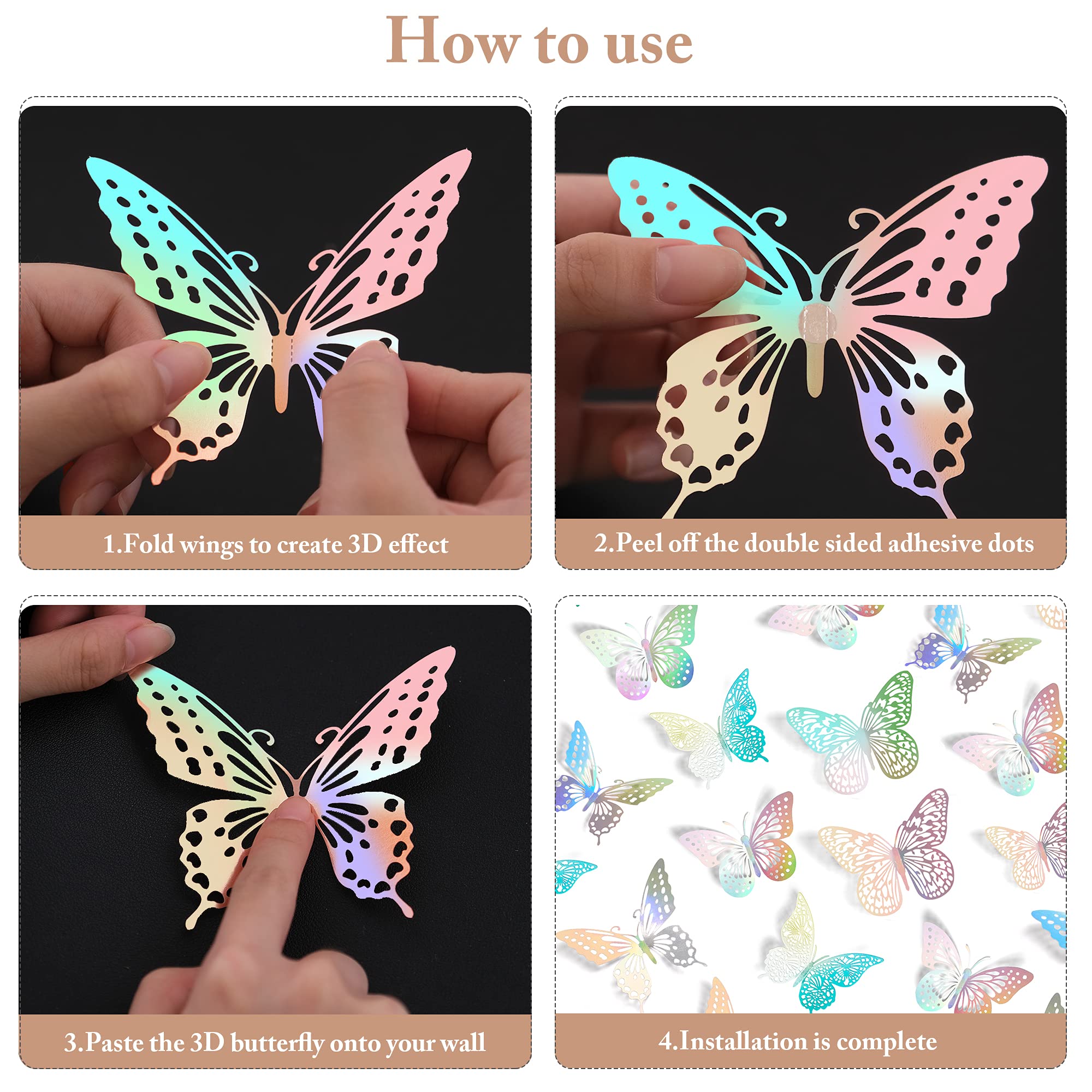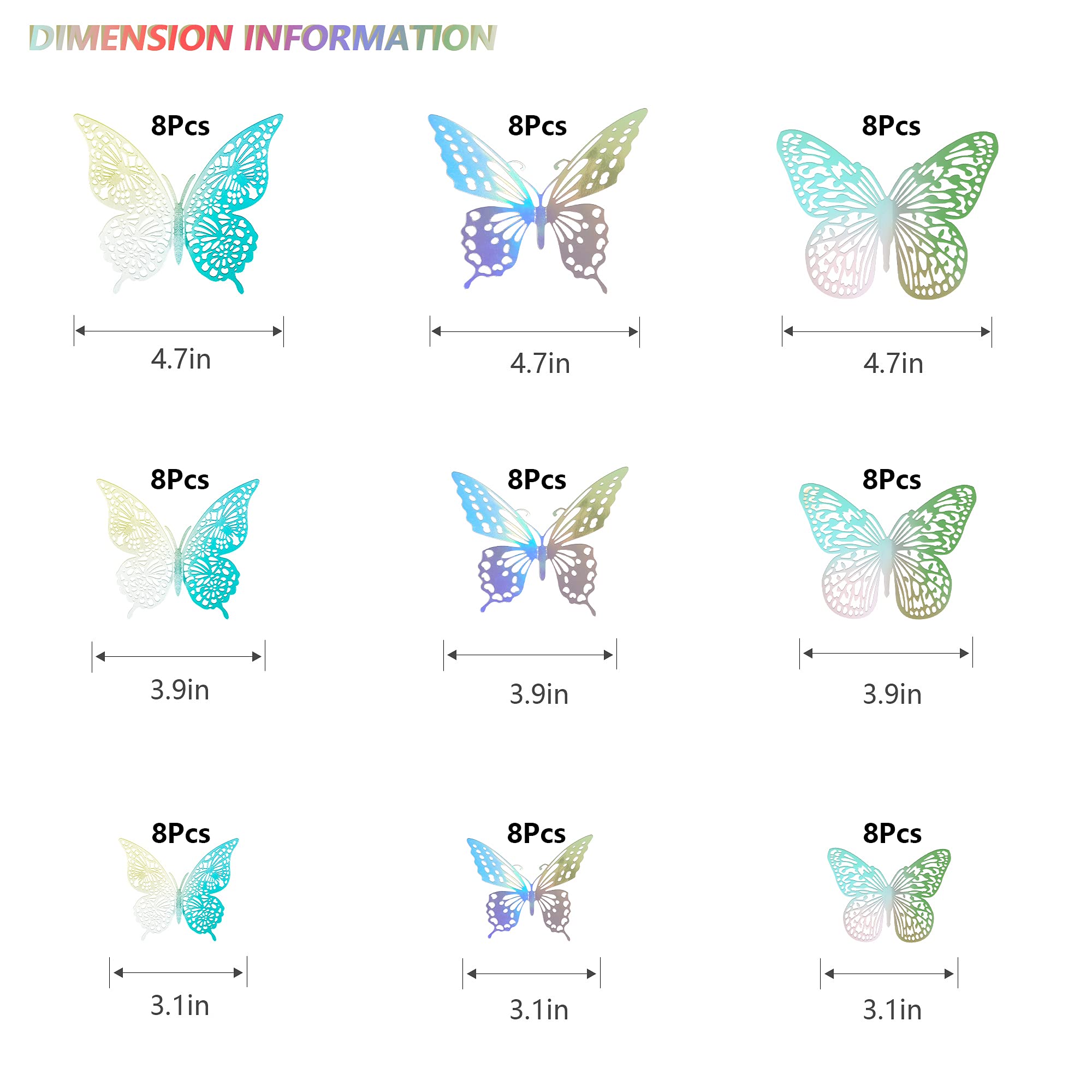 【Package Included】72 pcs butterfly wall stickers: 24 pcs Style 1, 24 pcs Style 2, 24 pcs Style 3, each style has 3 sizes(3", 4", 5"). Coming with 72 pcs double sided adhesive dots.