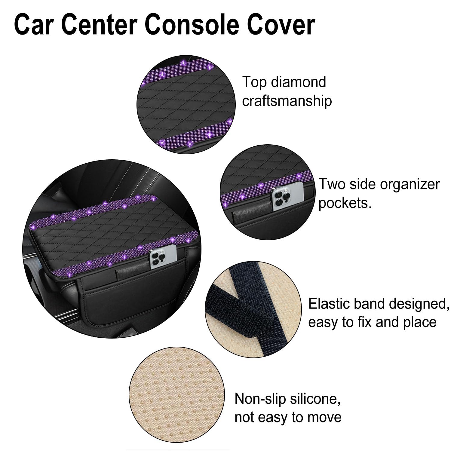 ✨【Luxury Bling Rhinestone Design】Elevate your car interior with our sparkling crystal car armrest cover. Adorned with hundreds of shiny rhinestones, this auto center console pad adds a glamorous, eye-catching touch to your vehicle, turning a simple armrest into a stylish luxury accessory that reflects light beautifully.