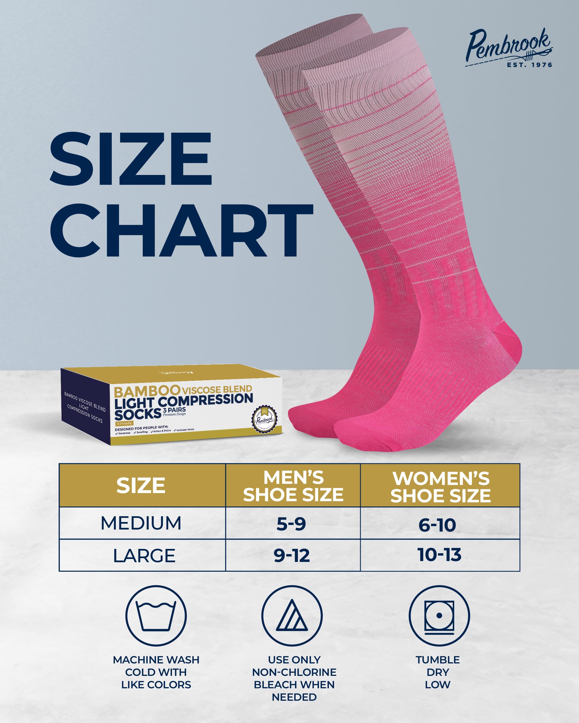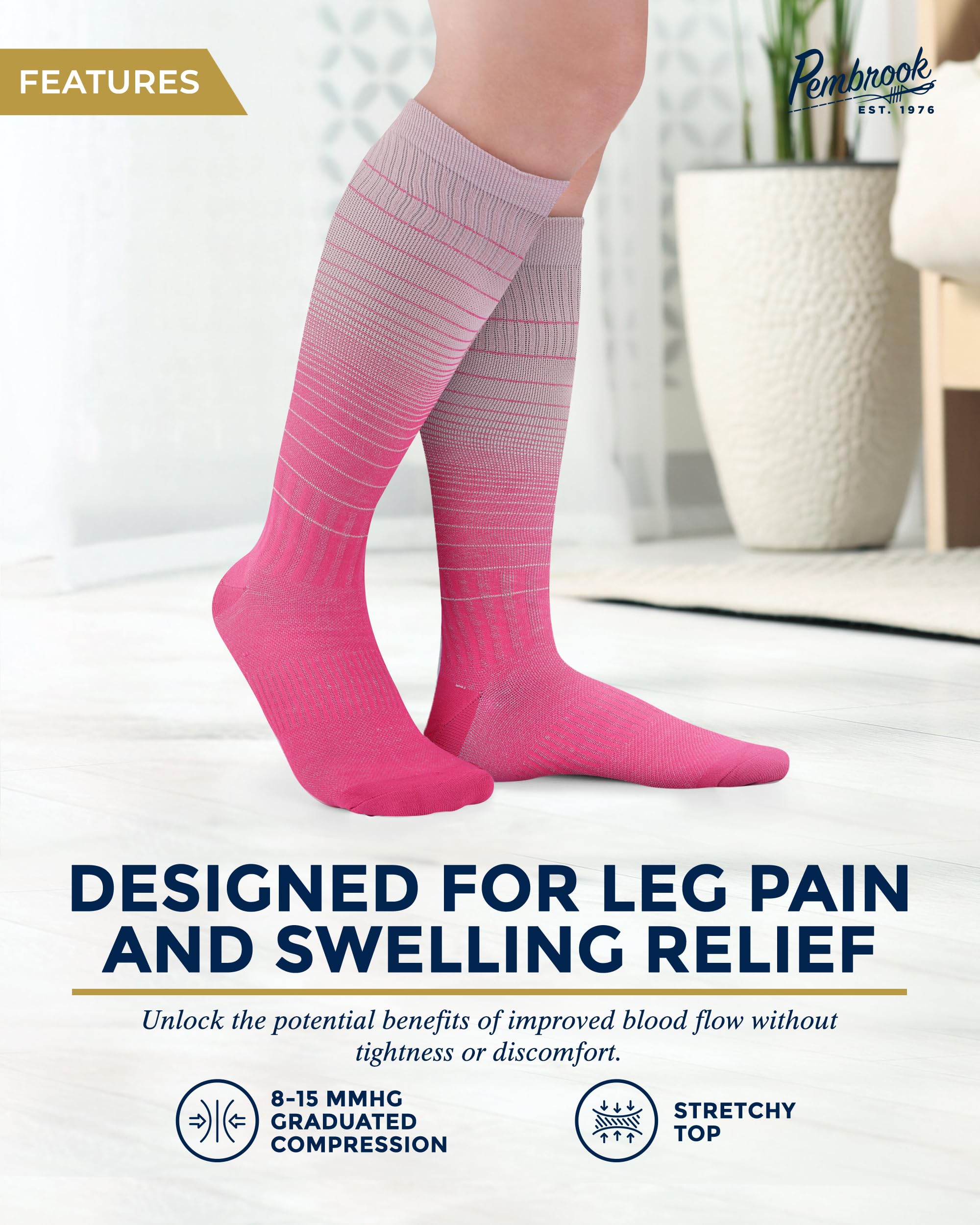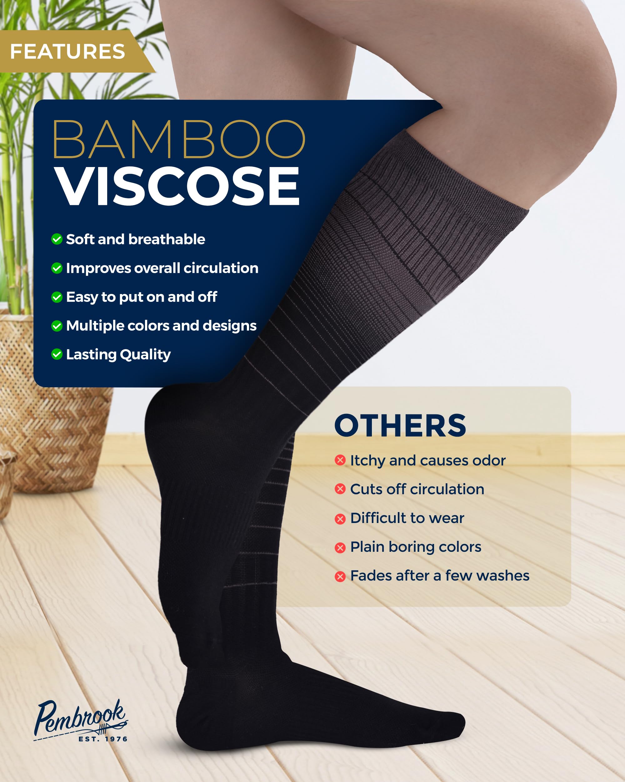 Premium Material - Pembrook mens and womens light compression socks feature viscose derived from bamboo, ensuring enduring freshness. With moisture-wicking and temperature regulation, these socks can withstand any climate.