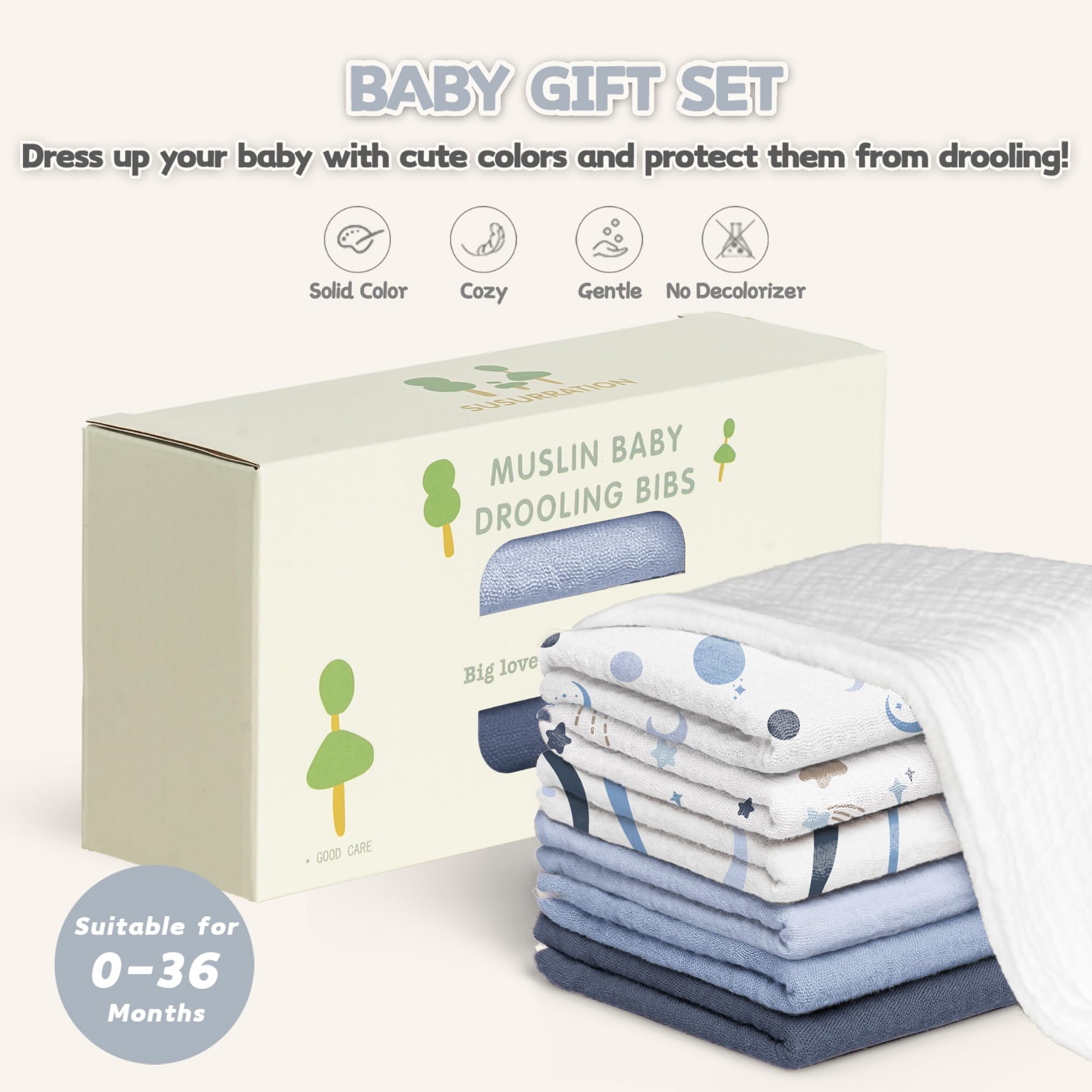 Soft & Superior Absorbency: Our Susurration Muslin Baby Drool Bibs are crafted from 100% cotton muslin on the front, they are backed with water-resistant soft plush to ensure maximum absorption with a skin-friendly, gentle touch for your baby's skin. The dual-layered design ensures both you and your baby remain free from wet clothes all day long.