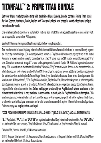 Bundle contains Prime Titan skins for Ion, Scorch, Northstar, Ronin, Legion and Tone and unlock new chassis, sound effects and unique executions for each.