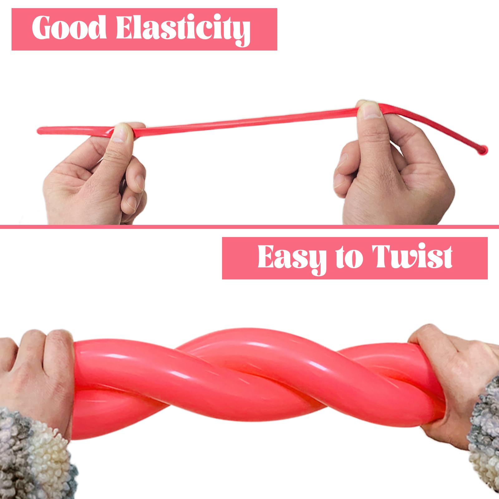 【Size Information】The light red twisting balloons length is 12 inches, it can be inflated to 50-60inches length, Please be careful not to expand the twisted balloon to its maximum length; When inflating, Please leave some space to avoid blowing up when twisting.