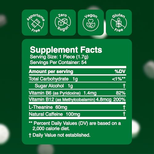 Fast-Acting Nootropic - Our energy supplements deliver an extra boost of energy and clarity with a blend of natural caffeine, L-theanine, and vitamin b6 & b12. Your go-to chewing gum for work, exercise, and daily focus!