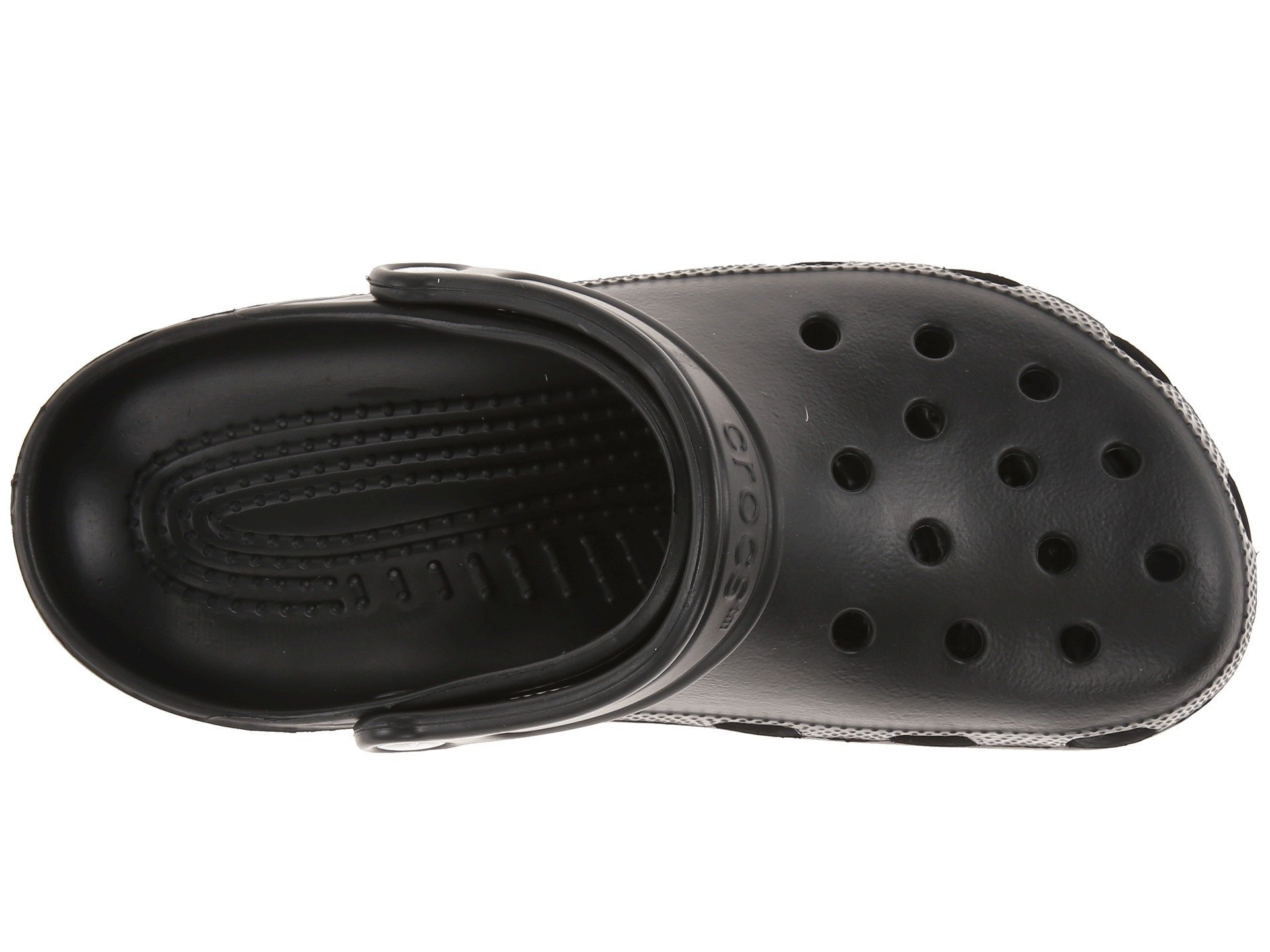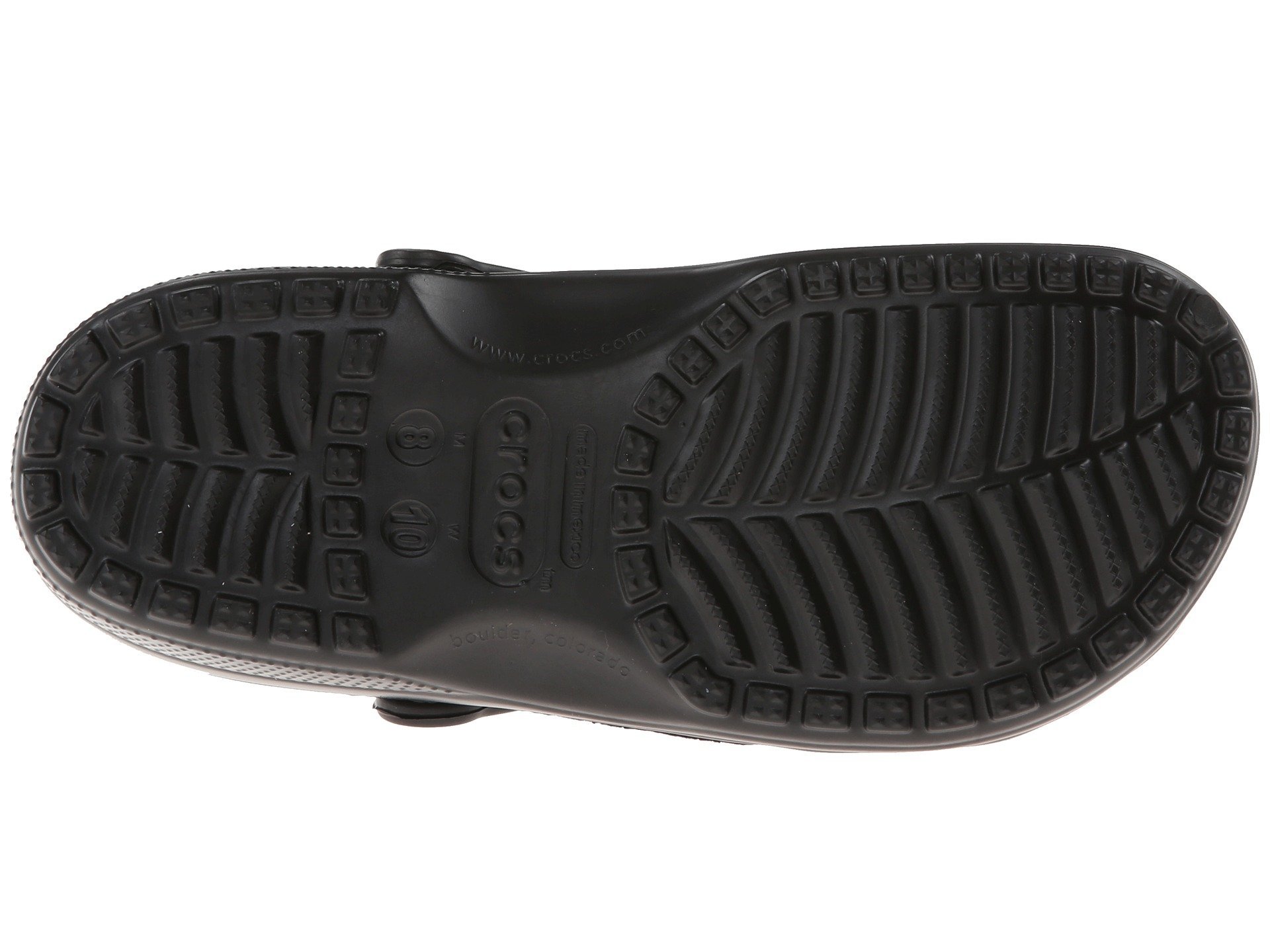 Footbed conforms to foot creating a custom fit. Advanced toe-box ventilation system. Treaded outsole for traction. Crocs™ states these shoes should fit very loosely. The sides of your foot should not really touch the sides of the shoe. Your toes should never make contact with the front of the shoe. Once you have centered your foot on the foot-bed: You should have about a 1/4 to 1/2 inch of space in front of your toes, behind your heel and when you lift the strap you should be able to comfo