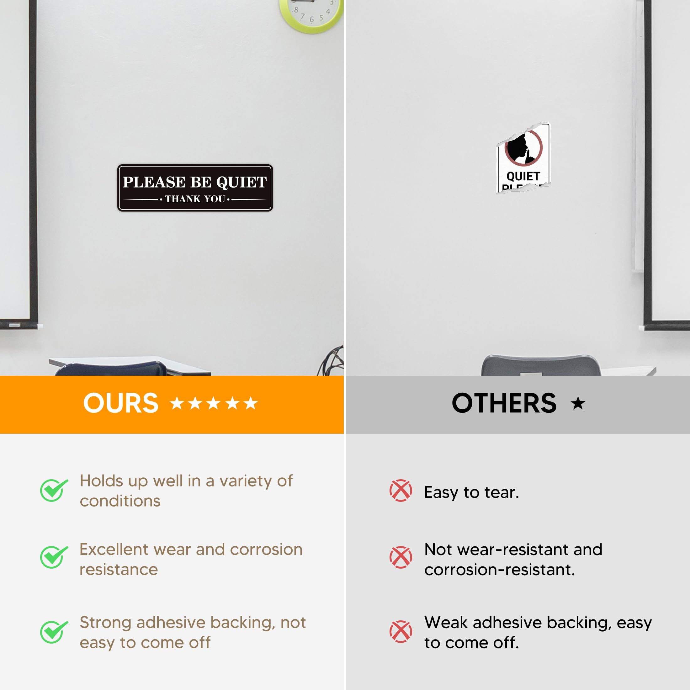 APPLICABLE SCENARIOS:Please Shut up sign to remind people to keep quiet, they can be used in libraries, hospitals, exhibitions, etc.So as to maintain a good order
