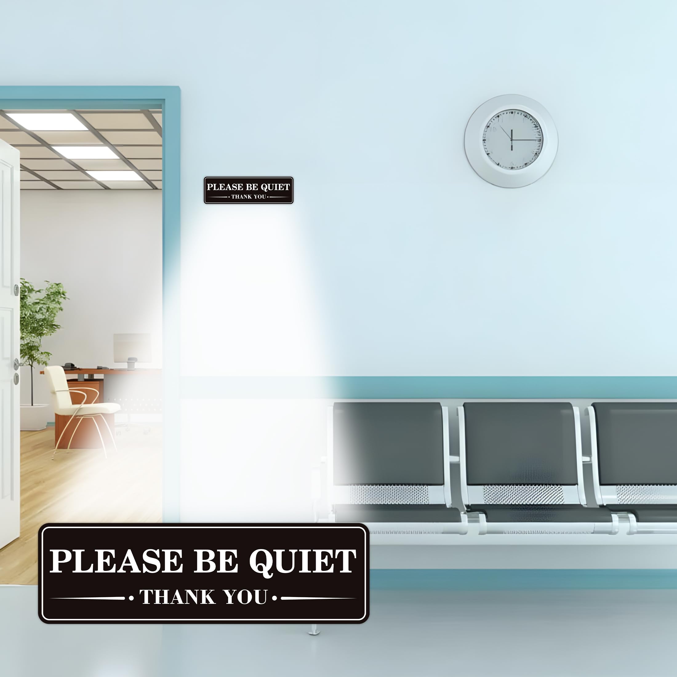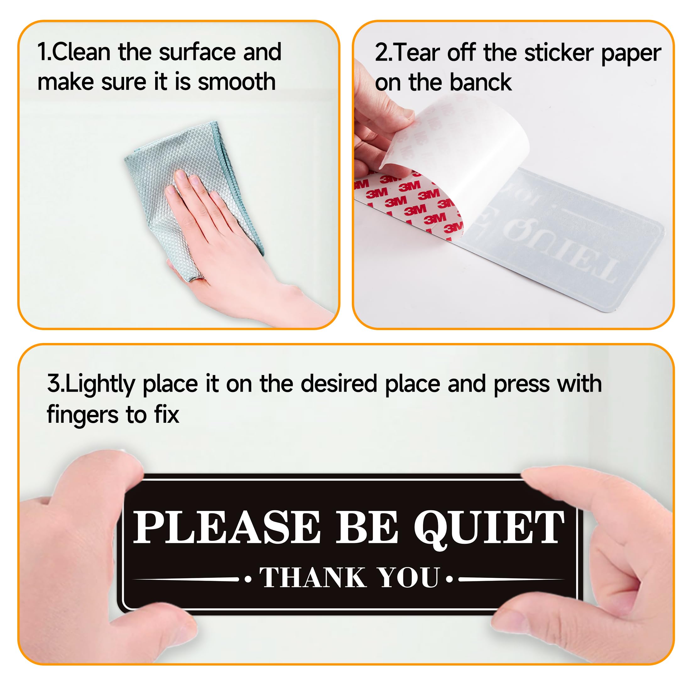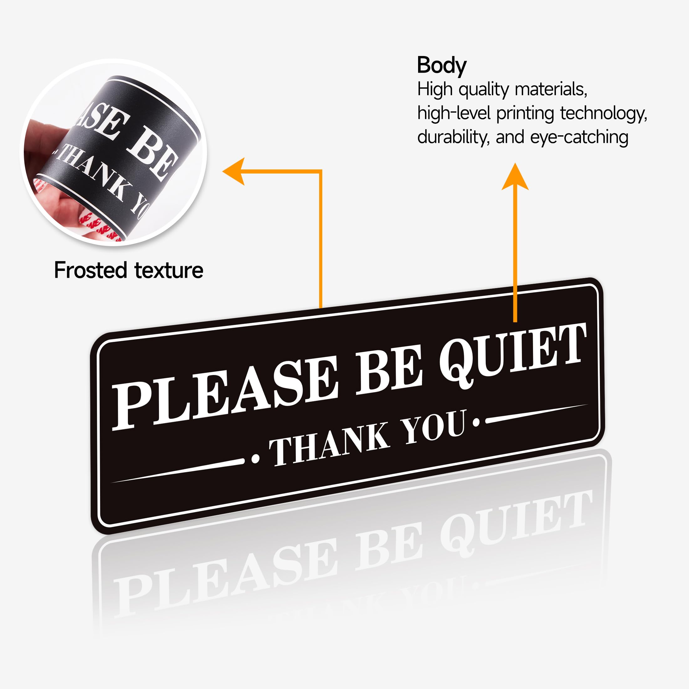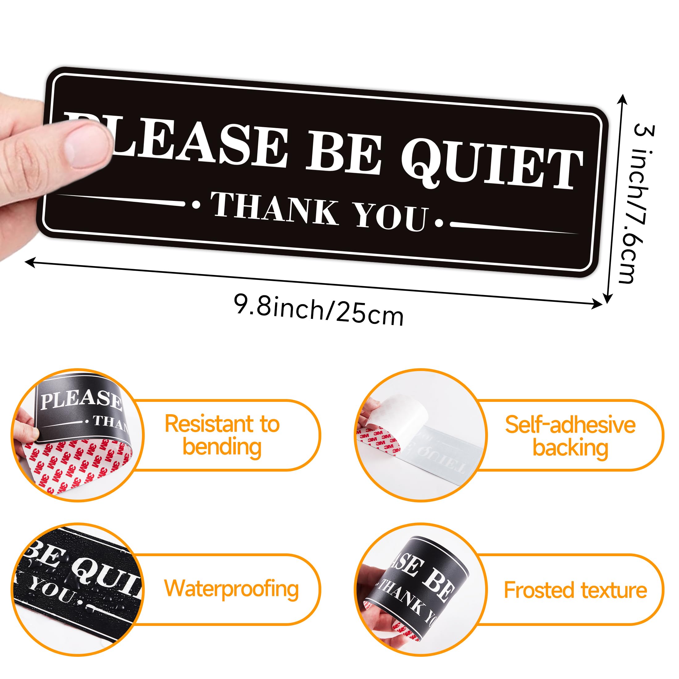 YOU WILL RECEIVE: 2 PCS please keep quiet Sign stickers inside, each with a length of 9.8 inches and a width of 3 inches. The surface is made of delicate frosted material, with a 3M backing adhesive. Unlike paper stickers, our product has a certain thickness