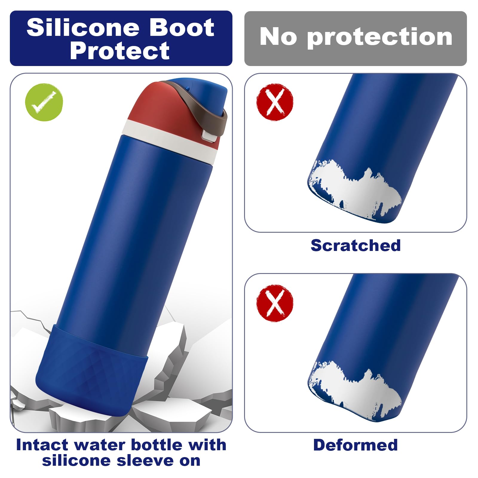 【Perfect Compatiblity】The silicone boot is suitable for Owala 24oz FreeSip, Twist, and Flip stainless steel water bottles. It is precisely made according to the size of the original cups, which perfectly fits the cup bottom and won't fall off easily.