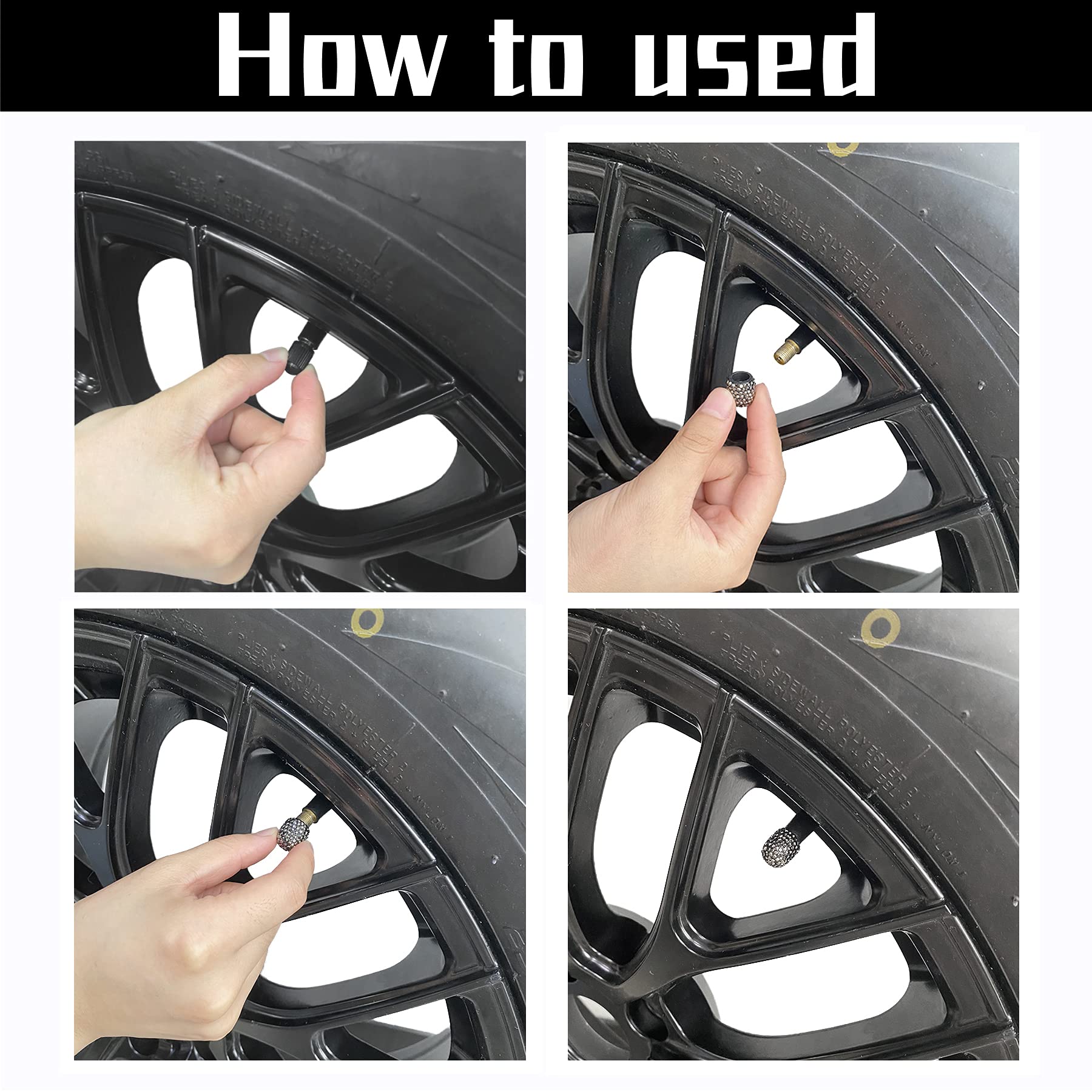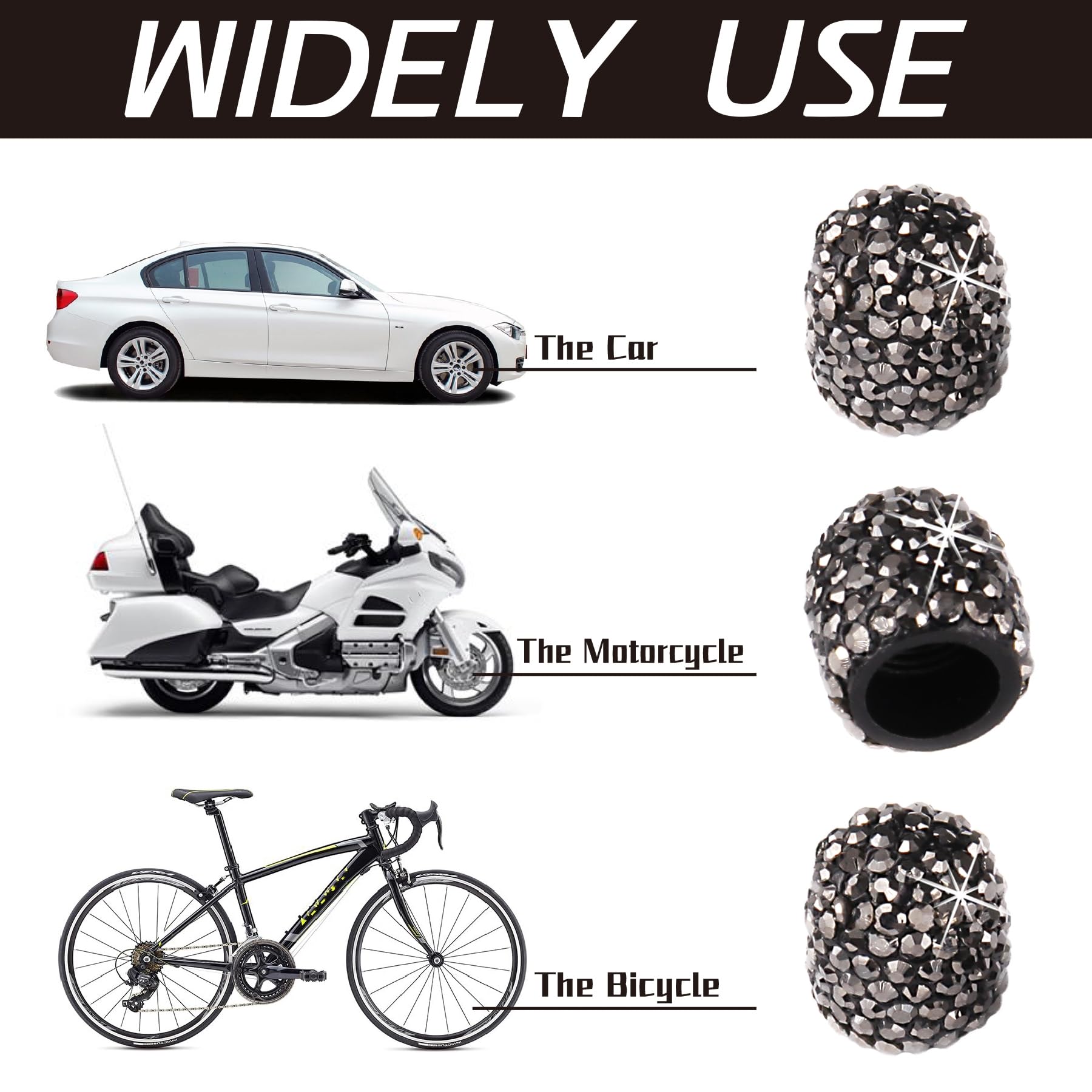 Easy to install, 4pcs valve stem caps, it's can easily tightened use your hand, no need any extra tools, very easy and convenient.Universal to most cars, trucks, motorcycles, and bicycles.