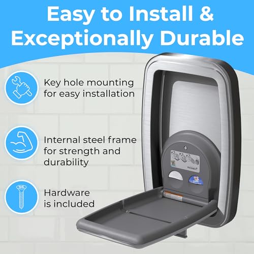 Convenient Diaper Bag Access: Includes a wall-mounted, solid, stainless steel bag hook, providing easy and safe access to diaper bags.