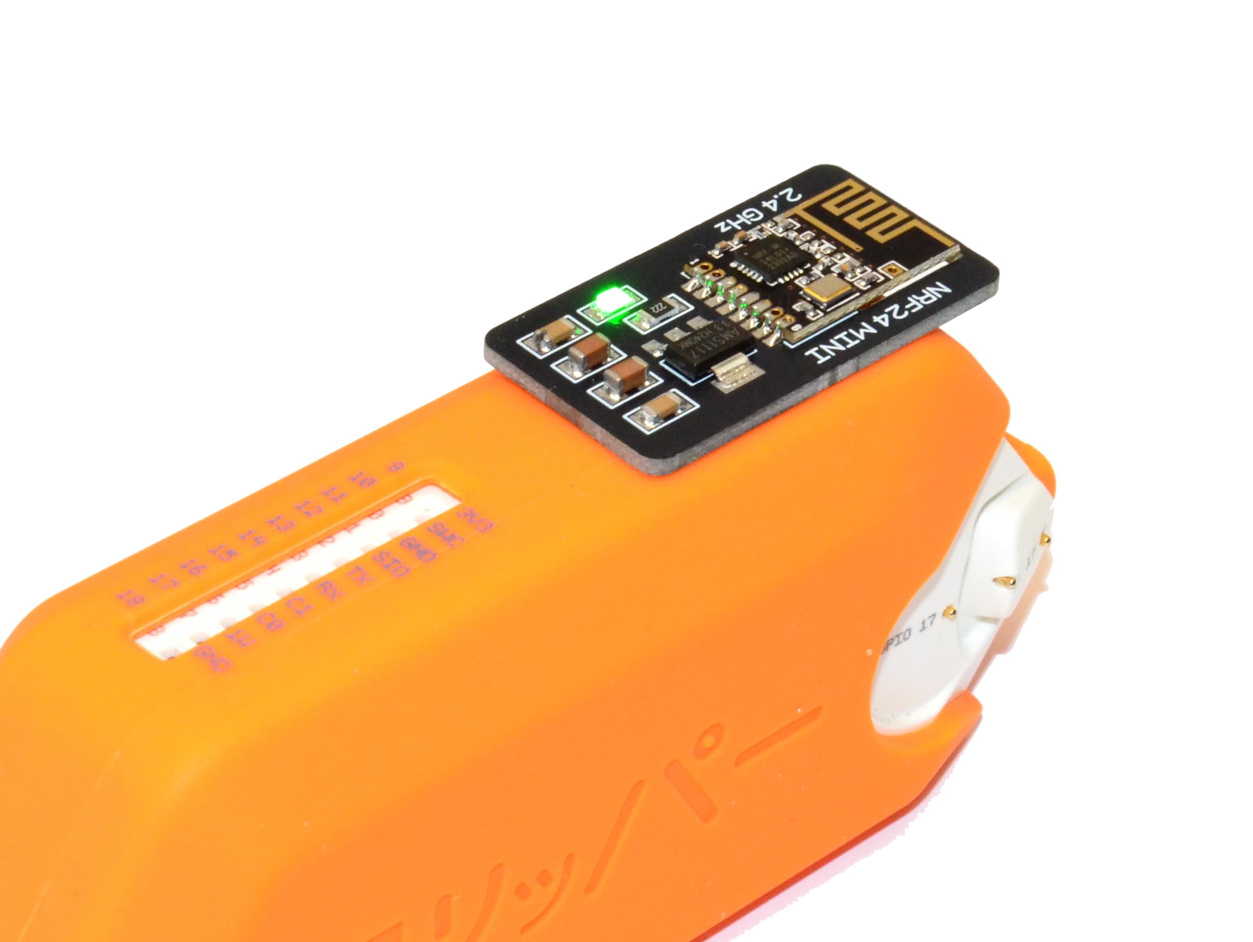 The board-upshield comes with a soldered NRF24L01 mini module, making it easy to get started right out of the box