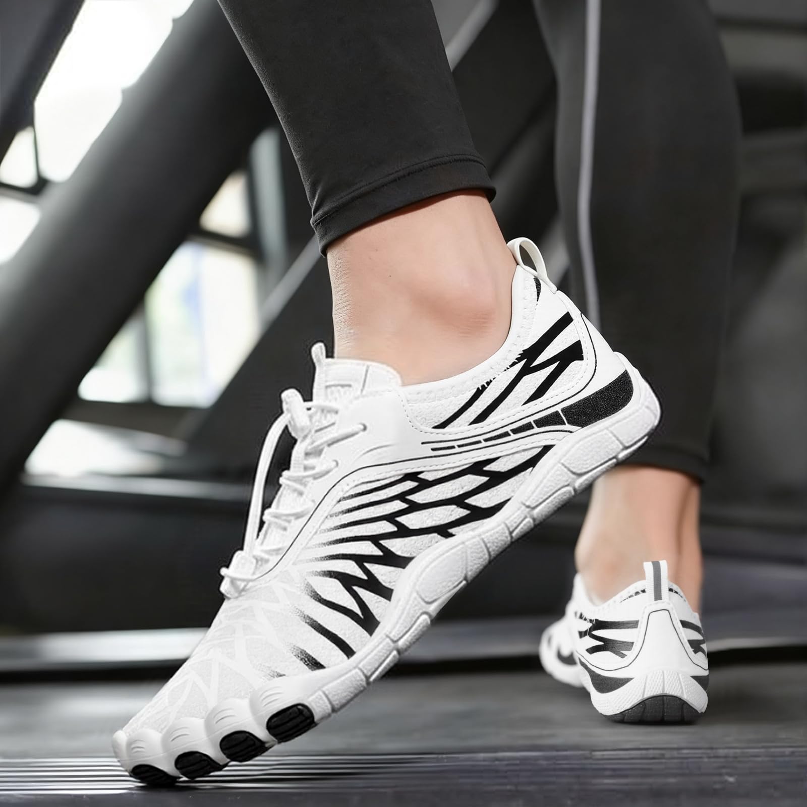 Wide Toe Box - Compared to the traditional trail running shoes, this women's barefoot shoe has a wider toe box design, which allows your toes to move and spread freely, promoting foot strength and flexibility. And this barefoot shoes has upgrade elastic drawstring allows you to quickly adjust the tightness of shoes and avoid the annoyance of tying your shoes.